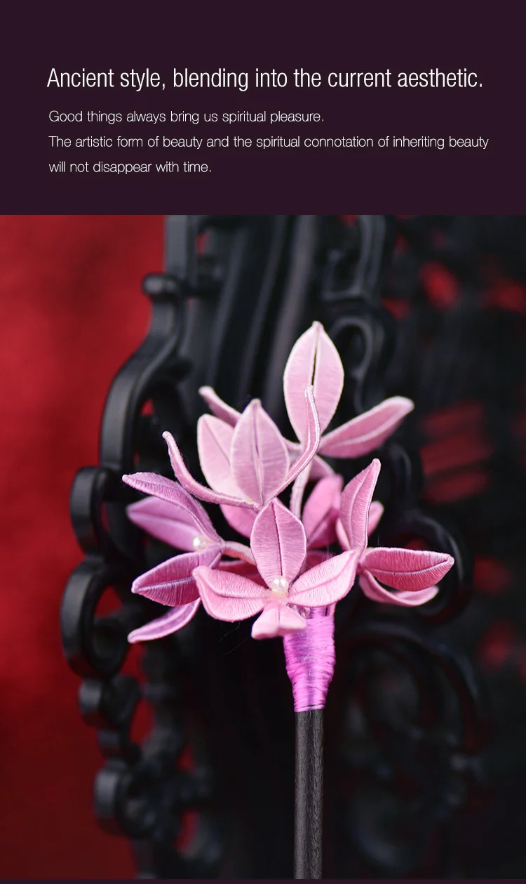 The thread wraps around the leaves and petals, and the copper wire gives a solid support.The overall entanglement acts on the hairpin,