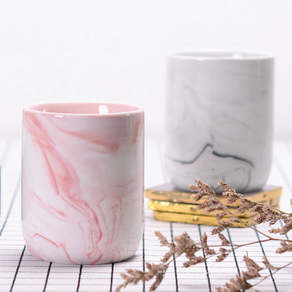 Горшки для ручек изготовлены из керамики с мраморной текстурой.