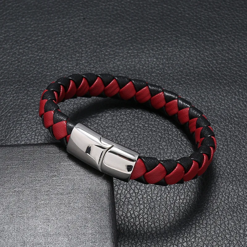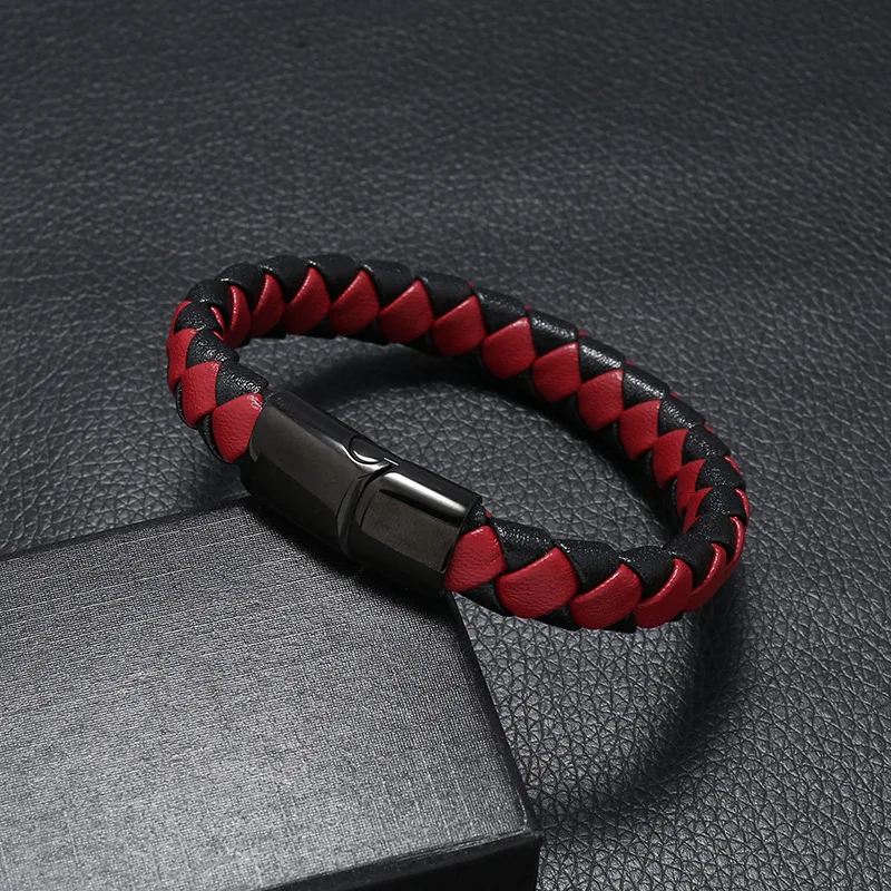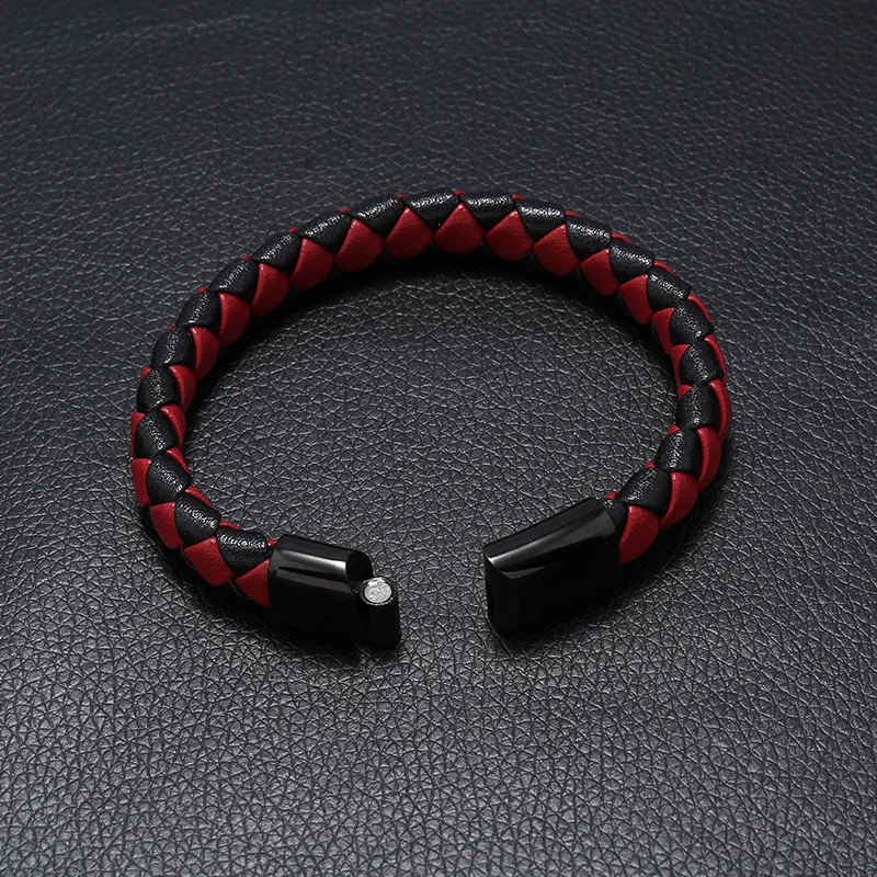 Мужские ювелирные изделия, красный и черный кожаный плетеный браслет с магнитной пряжкой, браслеты в стиле панк, мужские наручные браслеты Pulsera Hombre 20,5/22,5 см