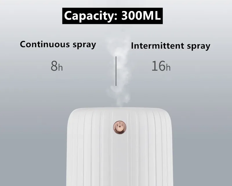 2. Беспроводное увлажнение (встроенный аккумулятор 800 мАч) 3. Бесшумное увлажнение, влажное и бесшумное. 4. Отключение по времени. 5. Романтический Ночной светильник. 6. Usb-интерфейс, удобная зарядка. 7. Два режима: непрерывное распыление в течение 8 часов. Прерывистое распыление в течение 16 часов. 8. Строго использовать высококачественный материал ABS и PP фильтр ватные тампоны, безопасные и экологически чистые. Информация о продукте Размер продукта: 80*80*120 мм Вес: 172 г Емкость аккумулятора: 800 мАч Емкость: 300 мл Режим питания: USB + аккумулятор Стандарт продукта: увлажнитель * 1 + линия передачи данных * 1 + руководство на английском языке * 1