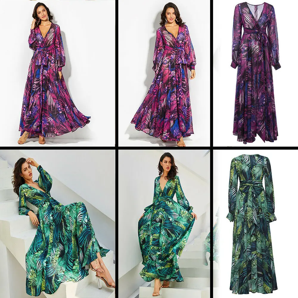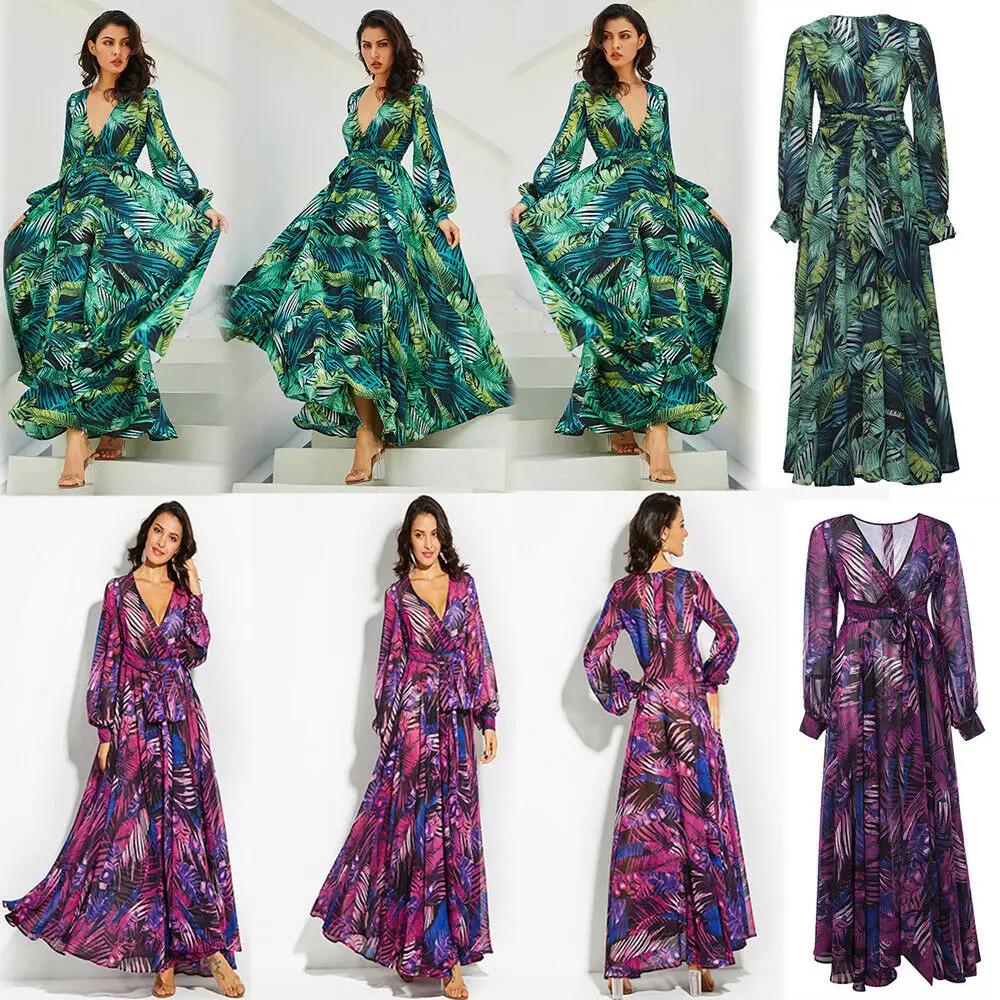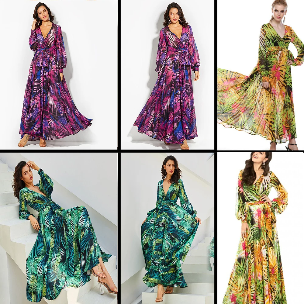 Модель: сексуальное женское повседневное пляжное платье в стиле бохо с цветочным принтом; Сарафан; Платье Макси