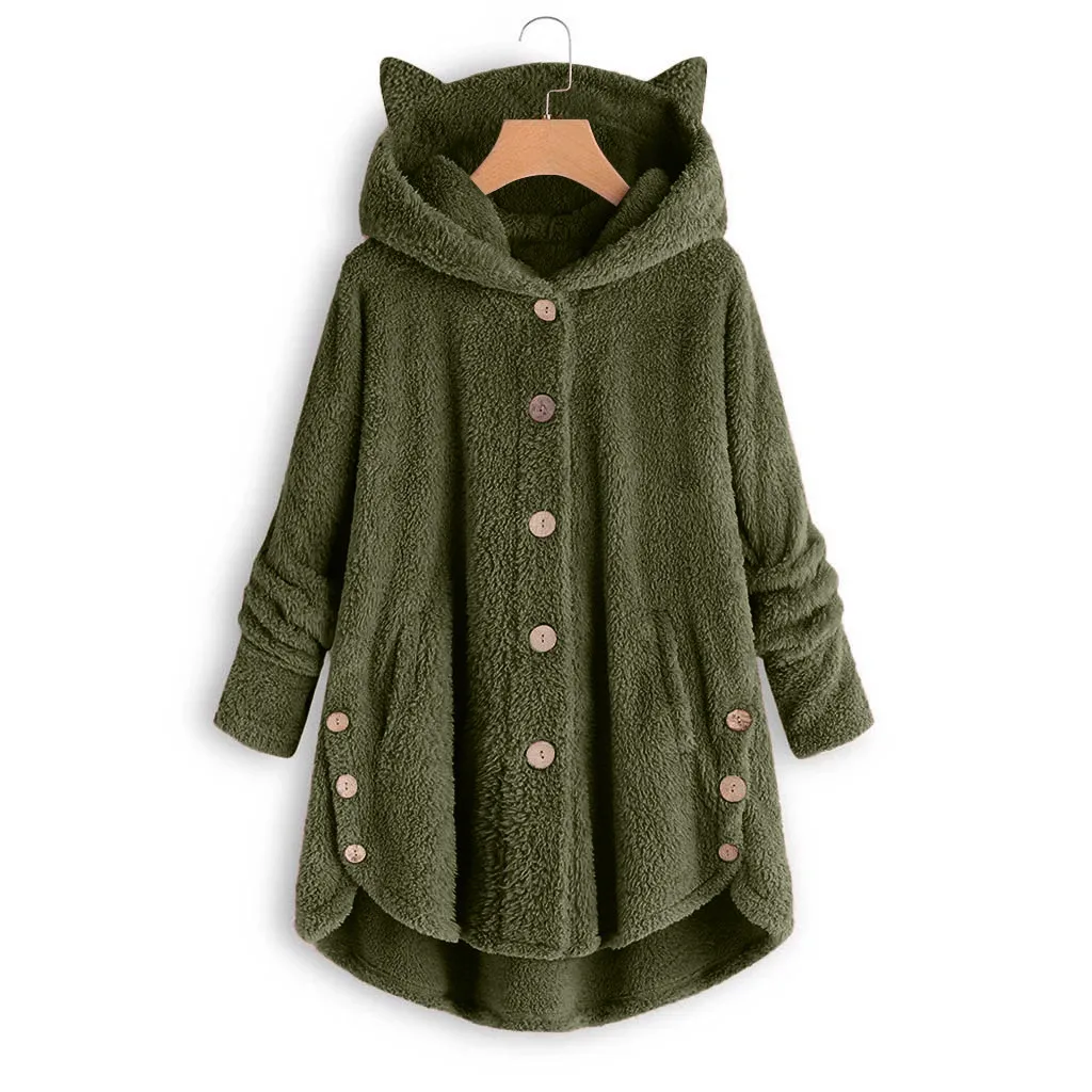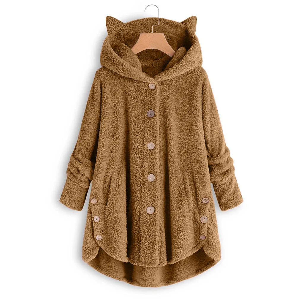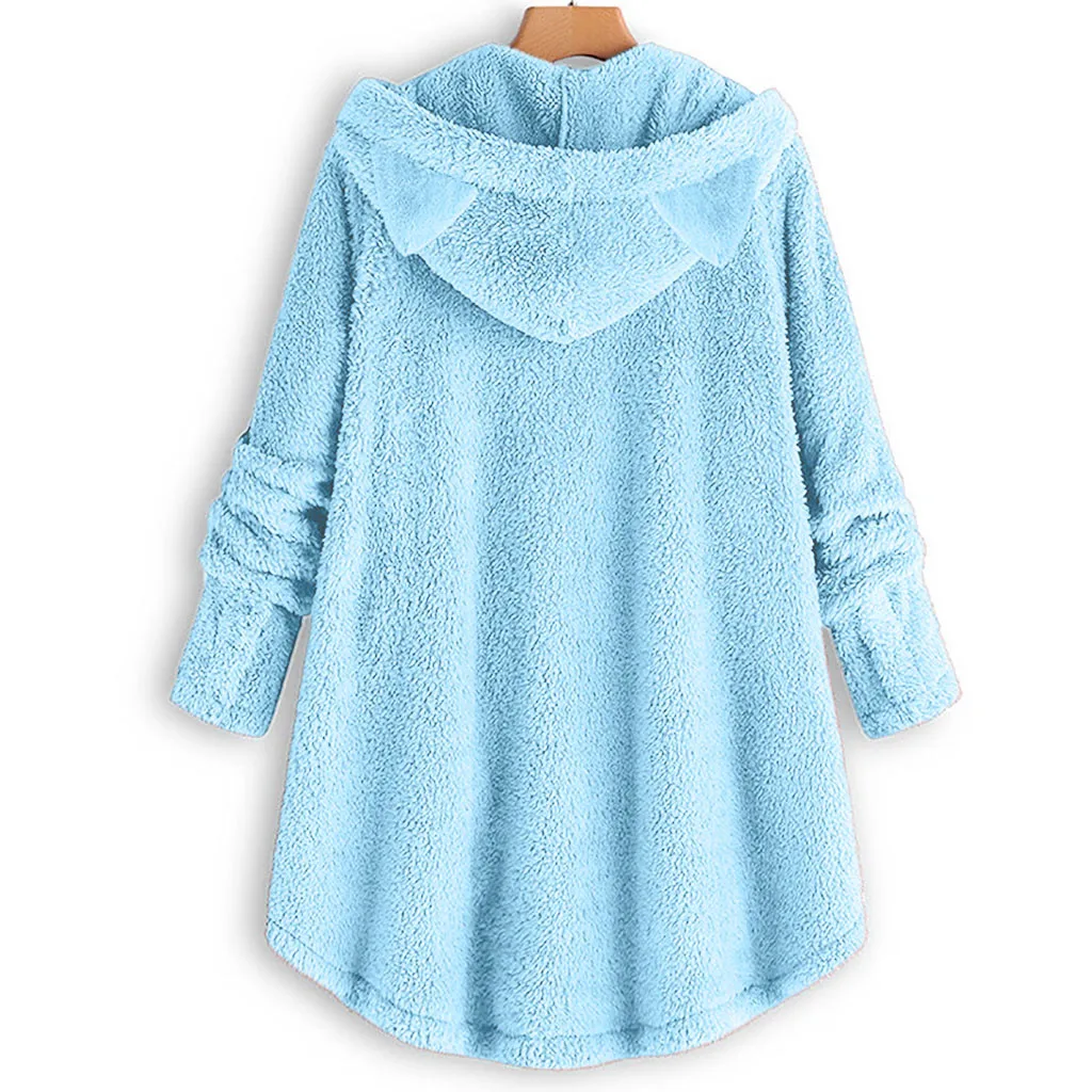 Женское пальто на пуговицах, однотонный пуловер с капюшоном, свободный свитер, блузка размера плюс