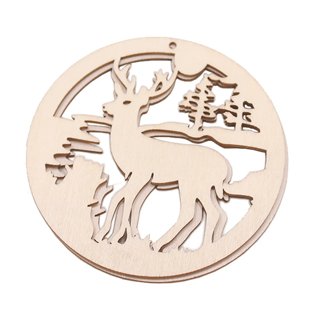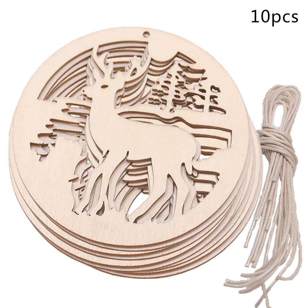 10 PCS Christmas Wooden Pendants Ornaments Party Decorations DIY Christmas Deer Tree Hanging Kids Gifts