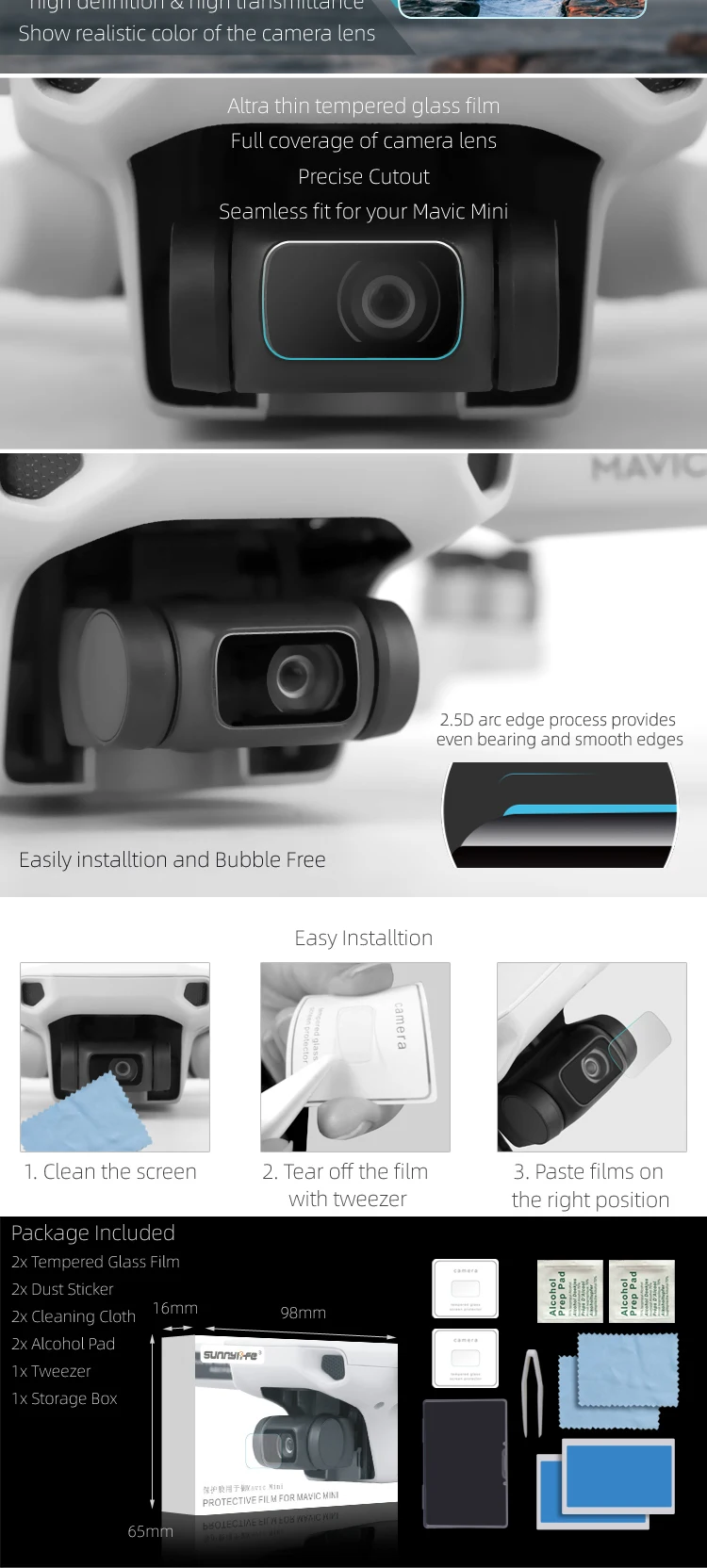 2 шт. защита для объектива камеры для DJI Mavic Mini Drone Защита от царапин защита от трещин HD Закаленное стекло Защитная пленка для объектива Комплект аксессуаров