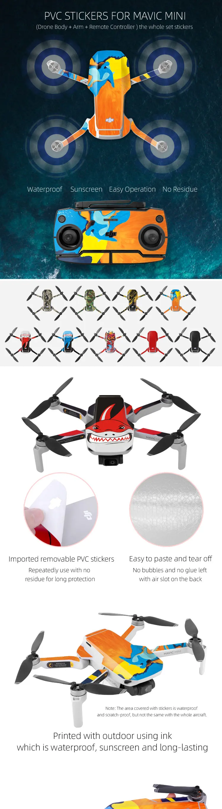 Защитная пленка ПВХ наклейки для Dji Mavic мини пульт дистанционного управления Водонепроницаемый устойчивый к царапинам Наклейки полное покрытие аксессуары для кожи