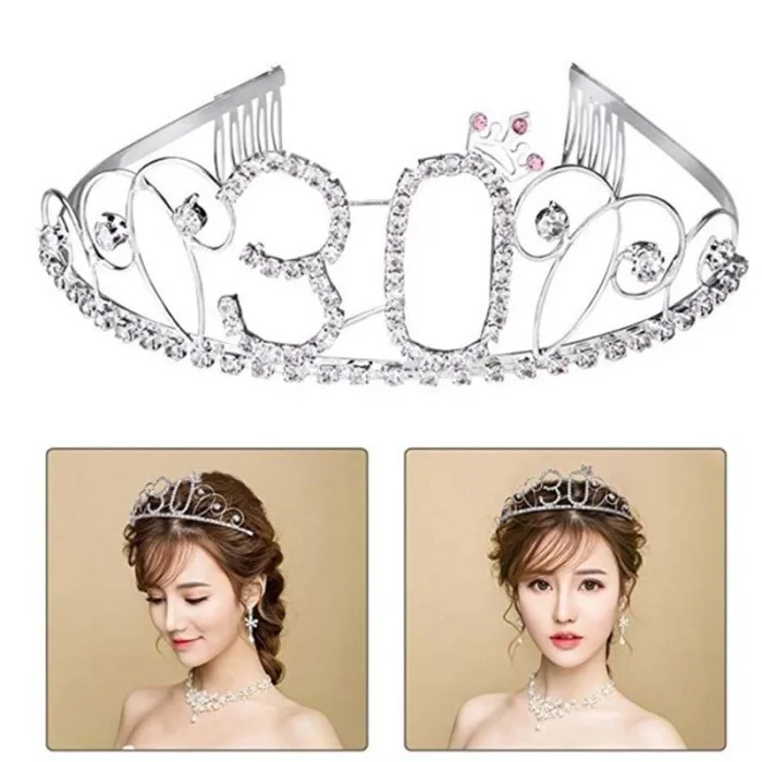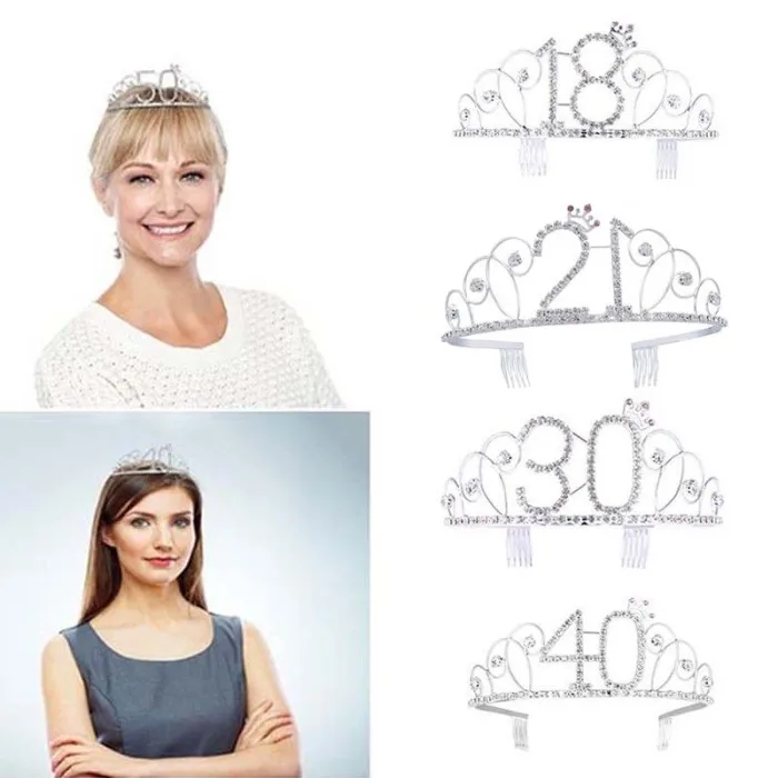 Юбилейная повязка на голову с короной на день рождения 18 20 30 40th сияющая диадема для дня рождения feat889