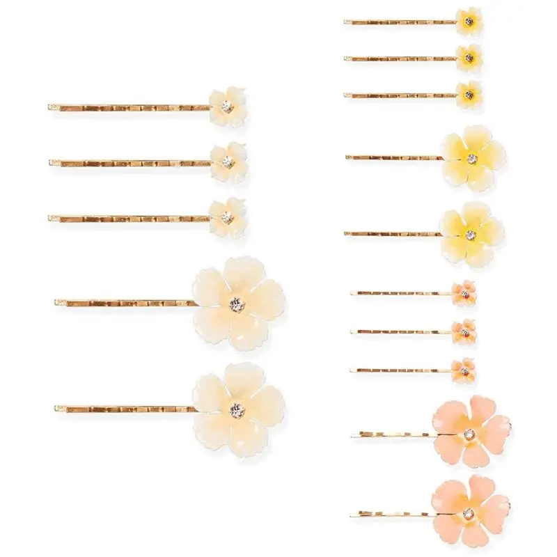 Классические заколки bobby, милые цветные эмалированные Цветы с пятью лепестками и стразы в центре, лучше всего подходят для боковой бахромы и челки.