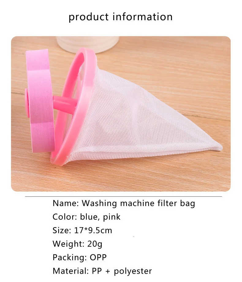 Описание продукта: фильтр стиральной машины мешок может поглощать волосы и мелкий мусора в одежде в сеть, чтобы сделать белье более чистым.
