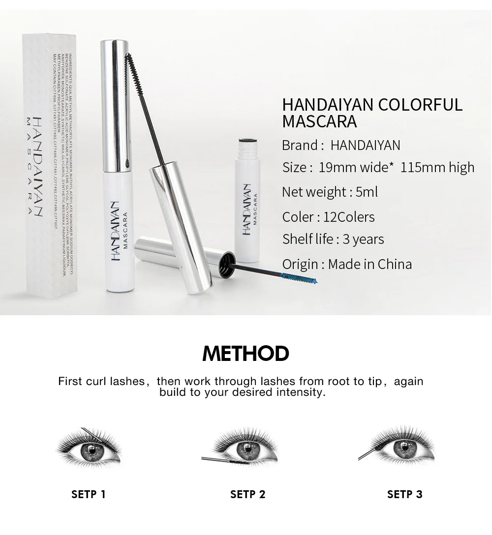 Разноцветная тушь для ресниц HANDAIYAN, легкая цветная щетка, натуральные ресницы, Подкручивающая Удлиняющая Тушь для макияжа, праздничная тушь для наращивания