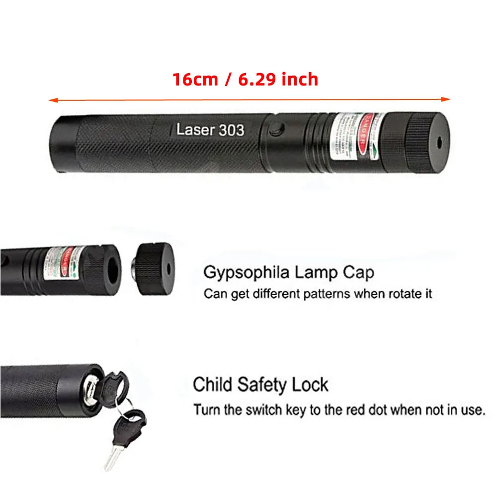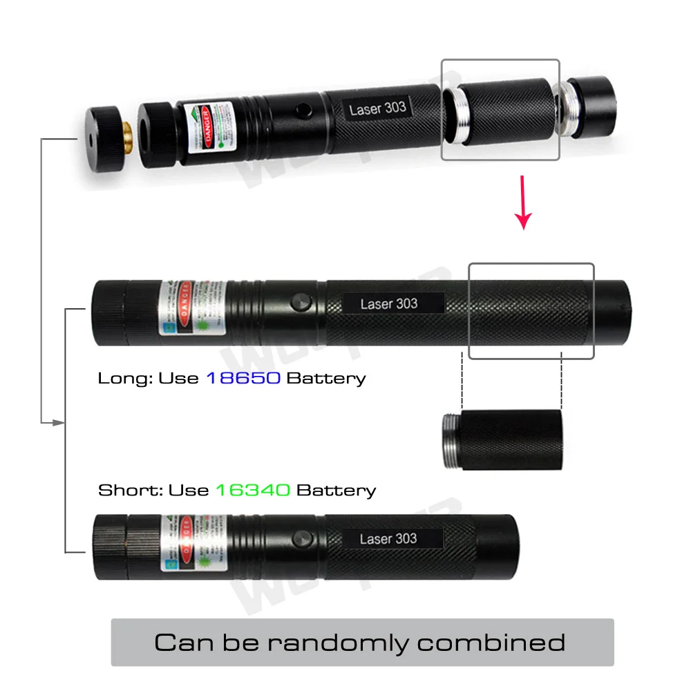 Мини-размер-подходит для ношения в кармане или сумочке. Высокая мощность-максимальное расстояние до 8000-10000 м. -Модель: Laser 303 -Цвет лазера: Зеленый -Длина волны: 532 нм +/-10 -Источник питания 1x18650 или 2x 16340 Батарея