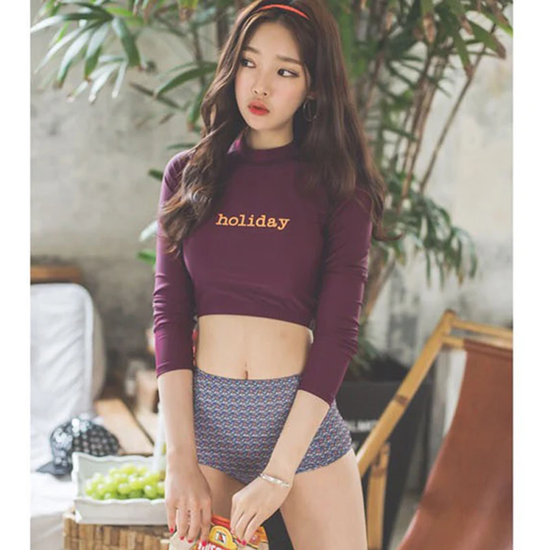 Женский раздельный купальник, купальные костюмы, женская одежда для плавания, купальный костюм с длинным рукавом, купальный костюм с высокой талией, женский купальный костюм из двух частей, топы с пуш-ап