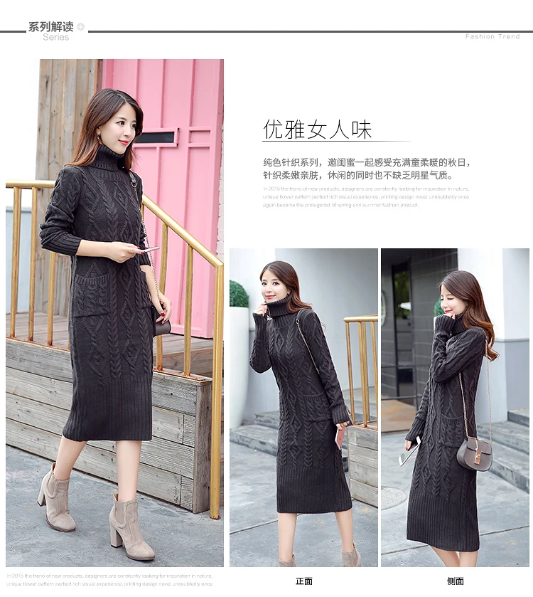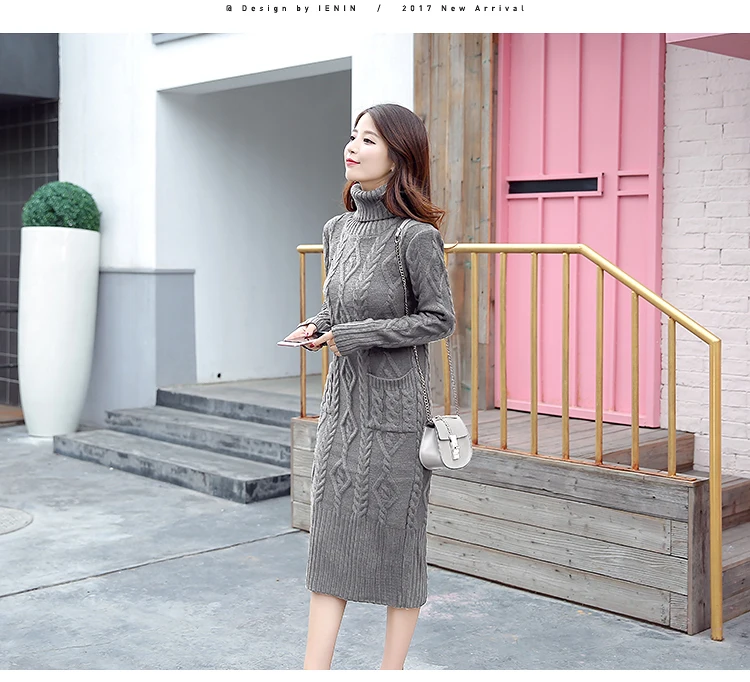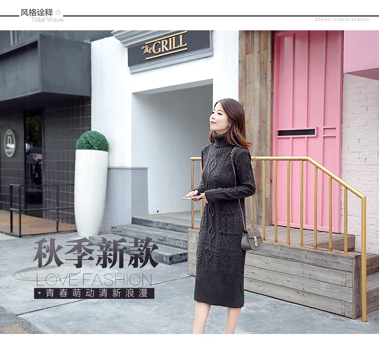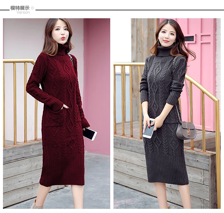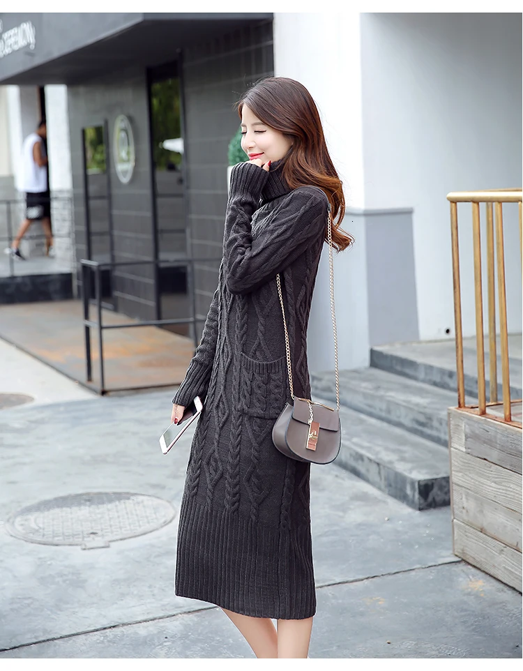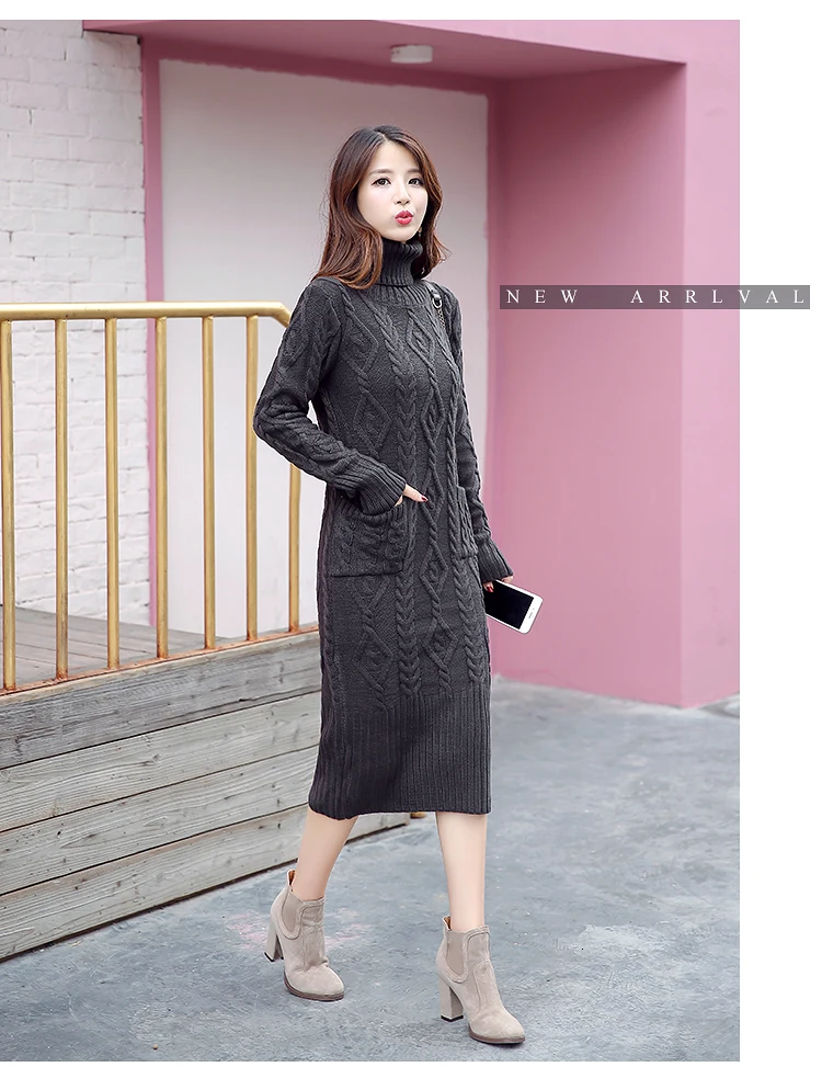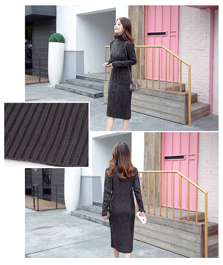 Новое трикотажное платье-свитер с длинным рукавом, однотонная водолазка, модные женские платья, повседневное облегающее платье миди для женщин, зима XL