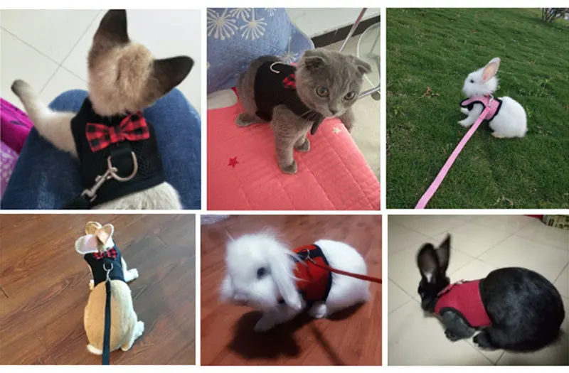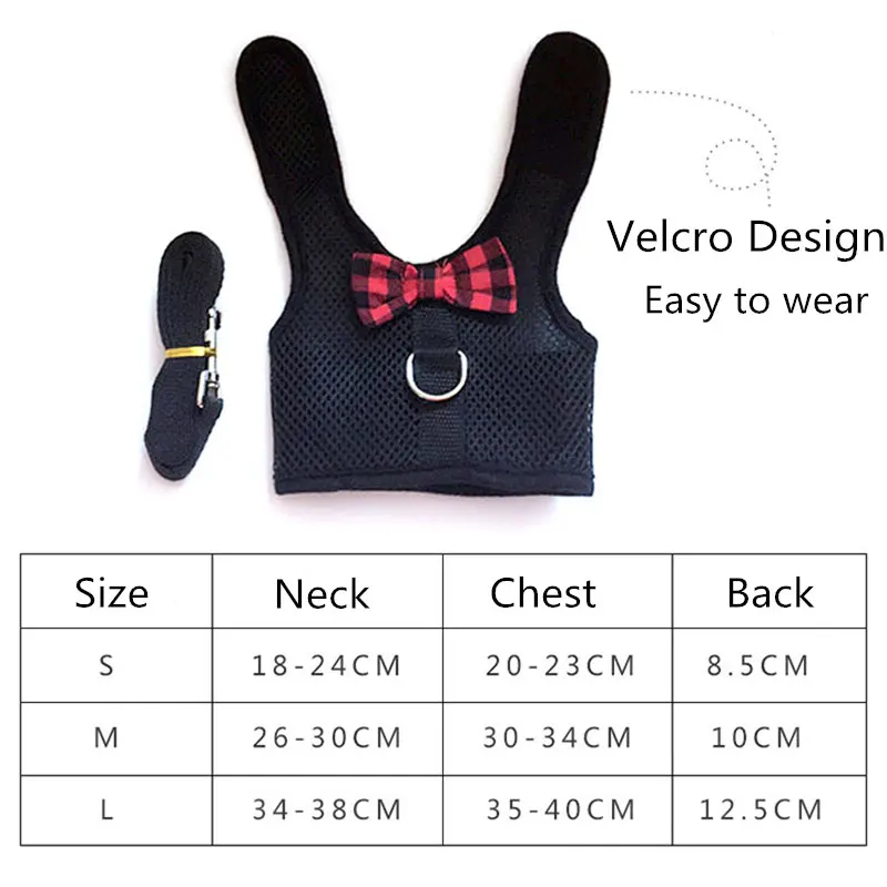 Воздухопроницаемый жгут и поводок для маленьких животных, сетчатый галстук-бабочка, свинцовый жилет, комплект одежды, подходит для кроликов, кошек, хомяков, хорьков, морских свинок, домашних животных