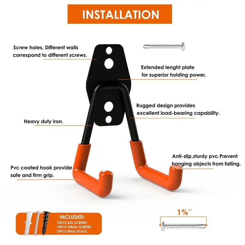 Различные особенности: Наши сверхпрочные гаражные Крючки идеально подходят для организации, особенно складных стульев, лестниц, велосипедов, инструментов, садовых шлангов, байдарок, дерева, сноубордов, скейтбордов, спортивное снаряжение и другие громоздкие предметы.
