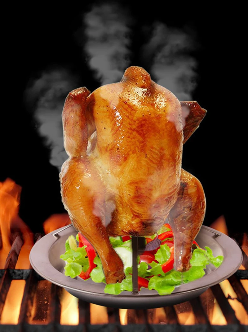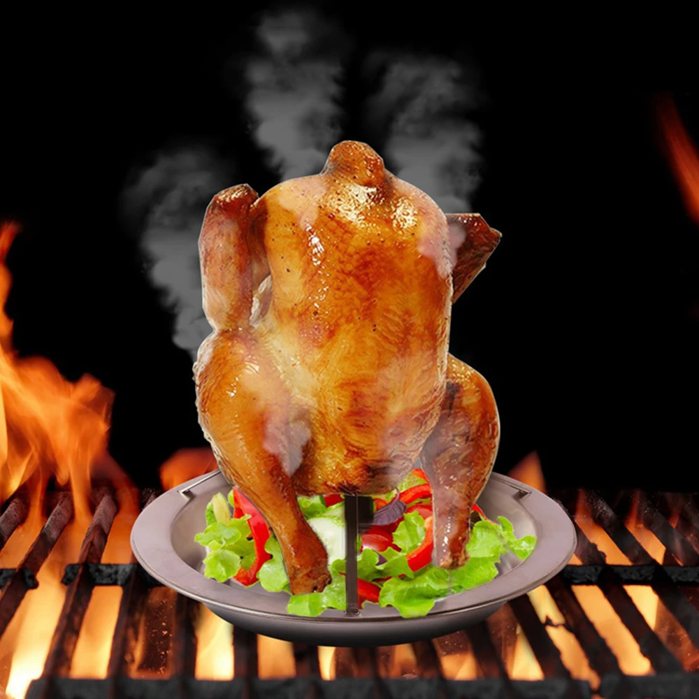 Стойка для курицы подходит для жареной курицы, индейки, цемента, среднего размера гуся, утки и мяса по вашему выбору, безопасна для грилей на древесном угле, Газовых Грилей и печей.