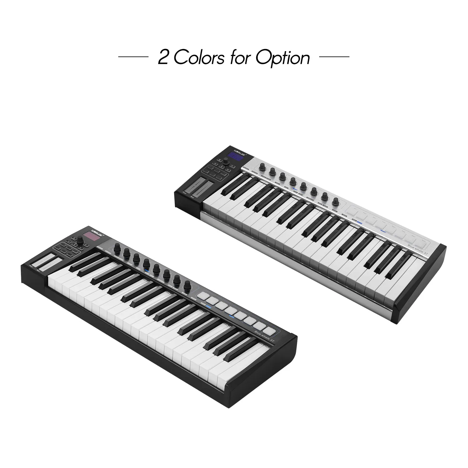 Профессиональная клавиатура MIDI с матовой алюминиевой панелью, четкий светодиодный дисплей и 37 полувзвешенных клавиш с последующим прикосновением.