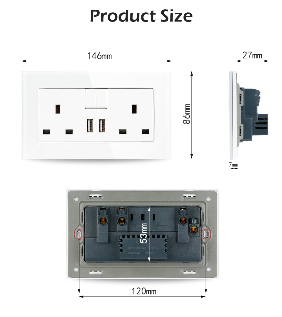 Быстрое зарядное устройство UNKAS с разъемом s, настенная розетка, стеклянная панель 13A, двойная розетка стандарта Великобритании, переключается с 2,1 А, двойной usb-порт для зарядки, зарядное устройство