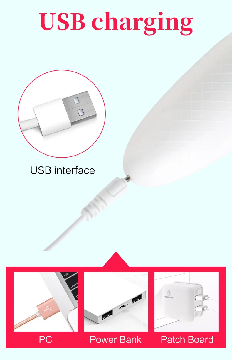 Вибрация регулятора скорости: Нажмите вниз, чтобы включить продукт, нажмите вниз, чтобы увеличить скорость, нажмите вверх, чтобы уменьшить скорость. Кнопка переключения режима: Нажмите кнопку, чтобы найти предпочтительный один из 8 режимов работы. Зарядка: Вставьте штифт зарядного устройства USB в штифтовое отверстие, расположенное на кнопке продукта. Устройство может быть предъявлено обвинение с помощью компьютера или адаптера переменного тока с USB портом для зарядки. Логотип Аккумулятора Мигает во время зарядки, пока не будет полностью заряжен. Примечание: заряжайте за 1 час до первого использования Важно: продукт необходимо заряжать регулярно (Ihour), чтобы защитить Срок службы батареи. Рекомендуется использовать в течение не более 30 минут. Никаких медицинских исков не требуется и не требуется в результате использования этого продукта. Инструкции по уходу: Протрите теплой мыльной водой или с помощью подходящего игрушечного пылесоса, рекомендованного продавцом