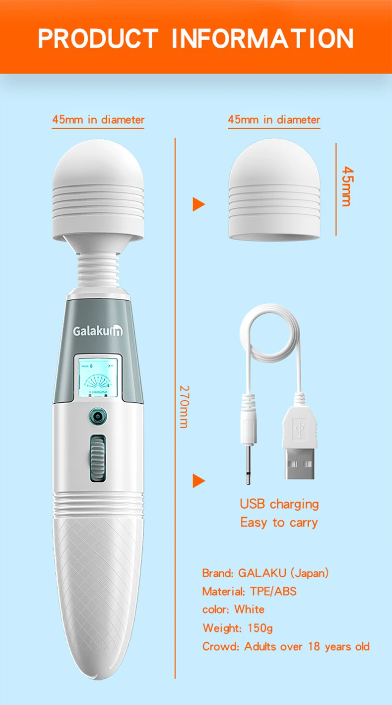 Размер: 270 мм * 45 мм Материал: силикон, АБС-пластик Вес: 165 г Мощность: 300MA Время зарядки: 60 минут Время работы: 70 мин Режим: 8 режимов