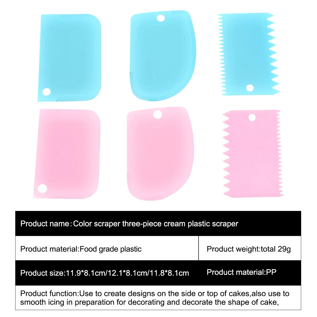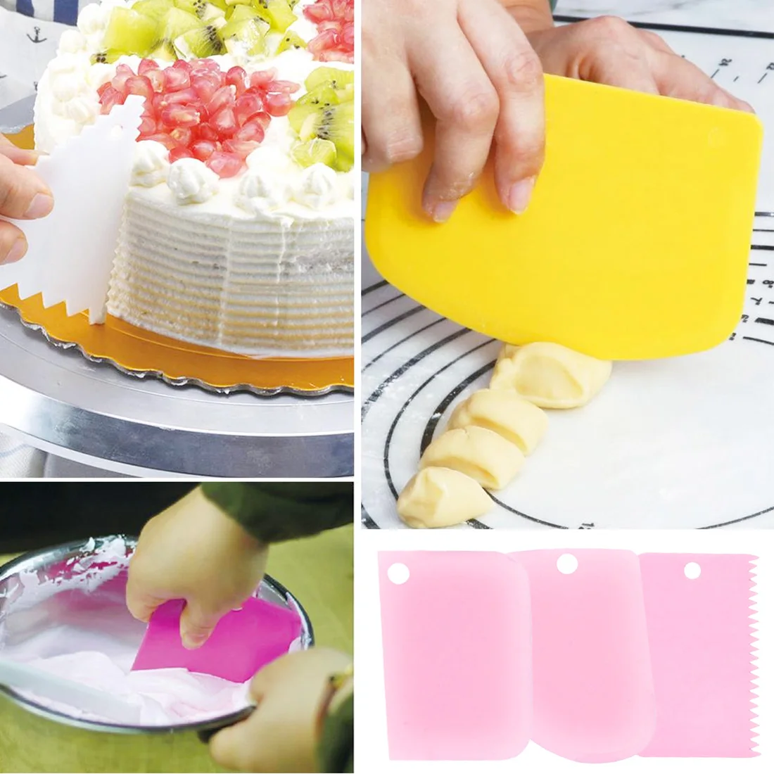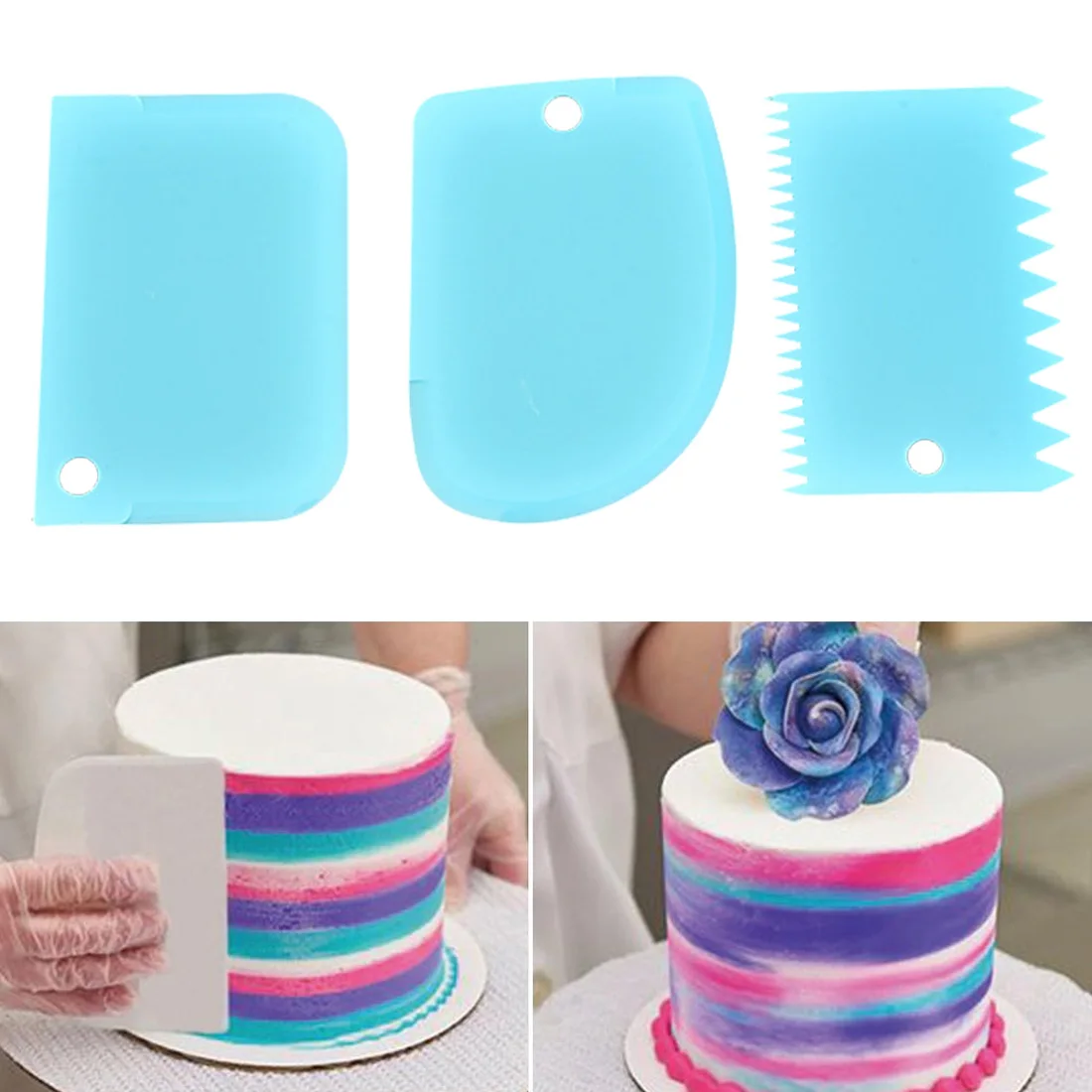 3 шт./компл., пластиковый нож для теста, инструменты для выпечки тортов, инструмент для глазури, скребок для мастики, украшения, простой Гладкий шпатель с зубчатыми краями