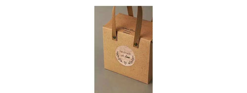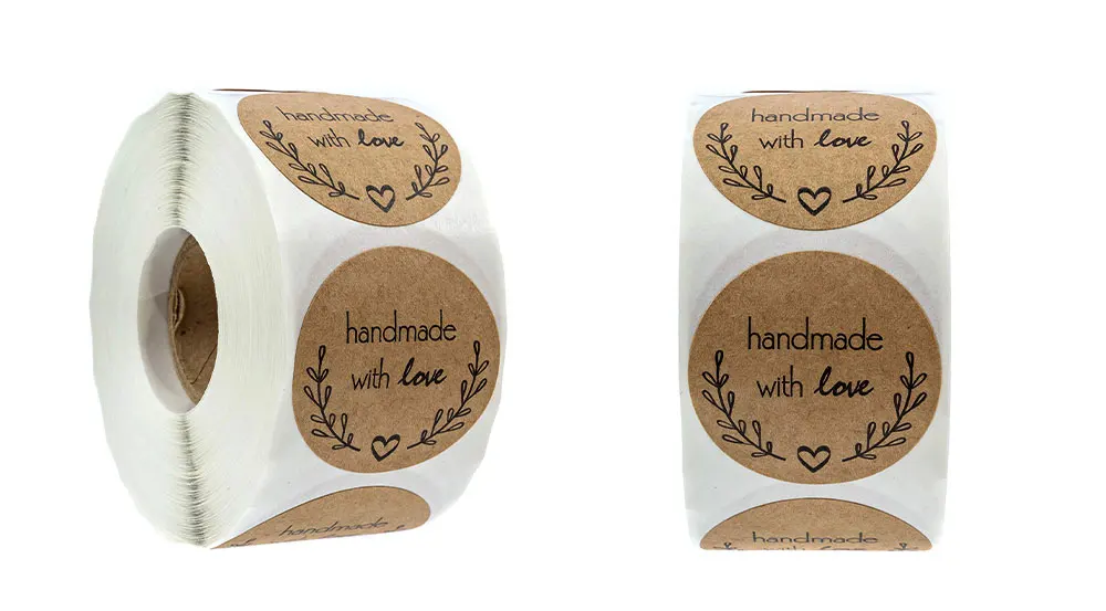 1 дюйм круговой коричневый крафт-наклейки 500 этикеток в рулоне Стикеры читает 'handmade с любовью» черными чернилами и привлекательный дизайн в форме сердца Крафт-этикетка с постоянным клеем, который прилипает к большинству поверхностей