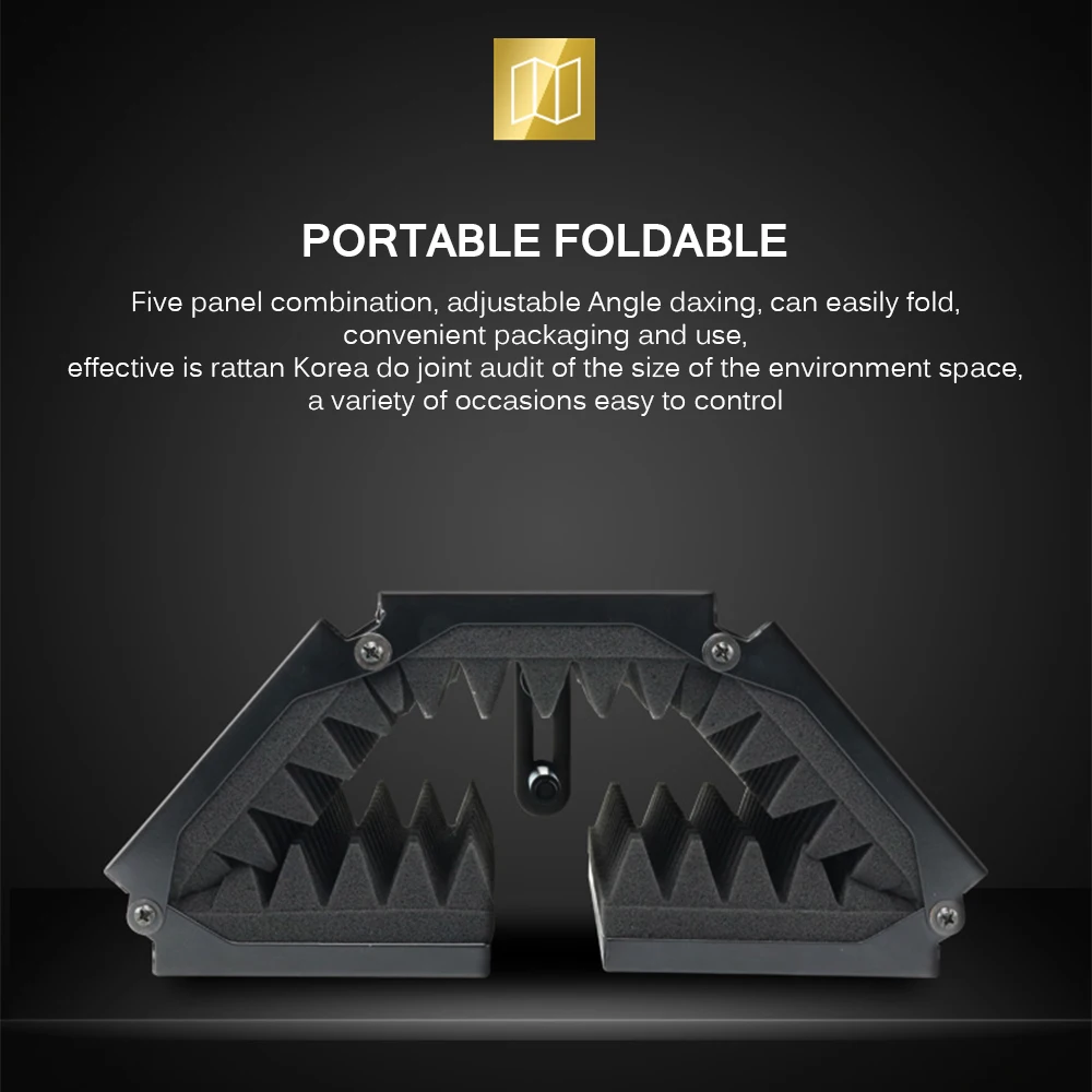 Весь акустический изоляционный щит состоит из трех небольших пенопластовых панелей 120*280 мм, которые прекрасно соединены. И вы можете отрегулировать подходящий угол с помощью соединительной части.