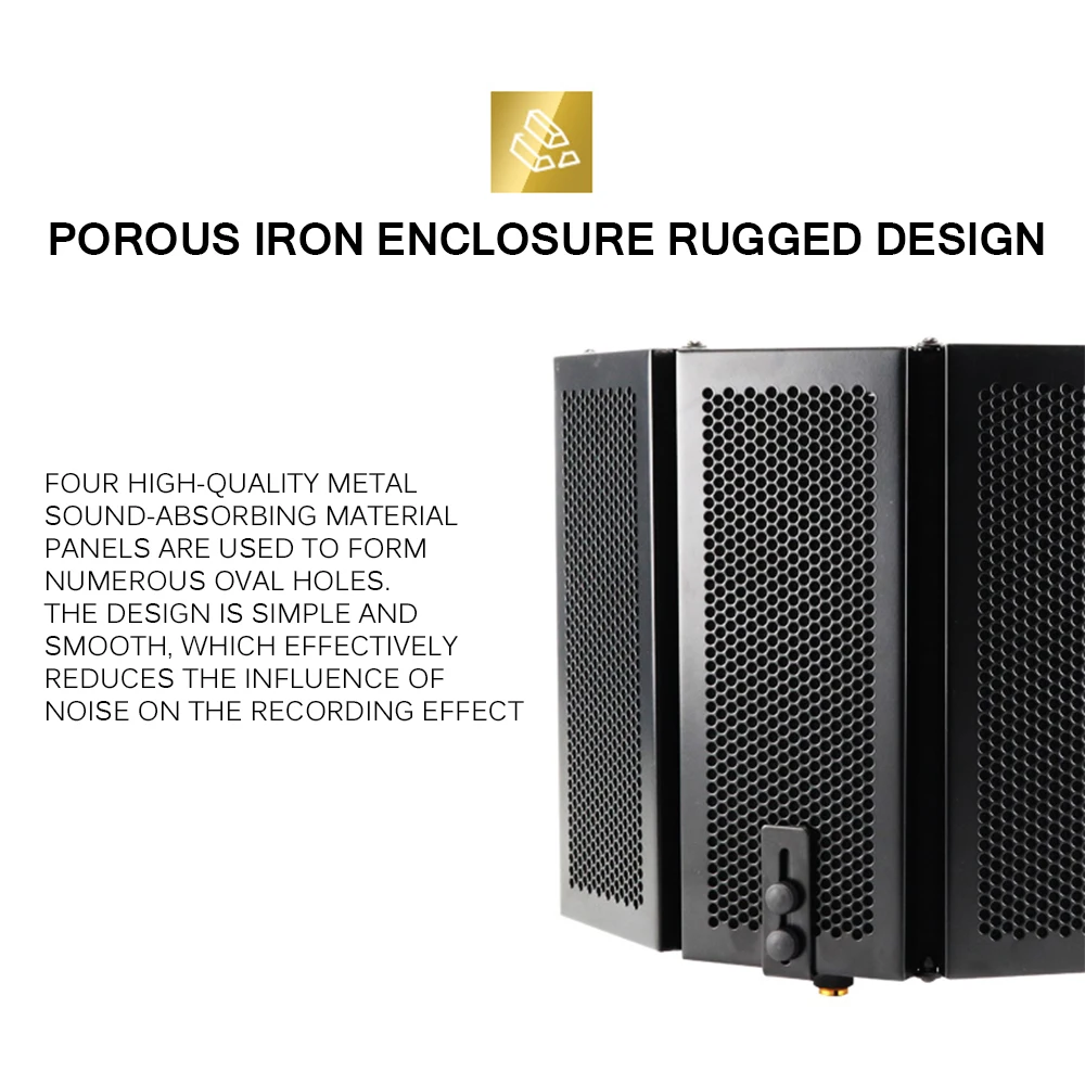 Акустический изоляционный щит принимает пену высокой плотности, чтобы эффективно изолировать шум снаружи и поглощать эхо. С защитой от акустической изоляции производительность записи лучше.