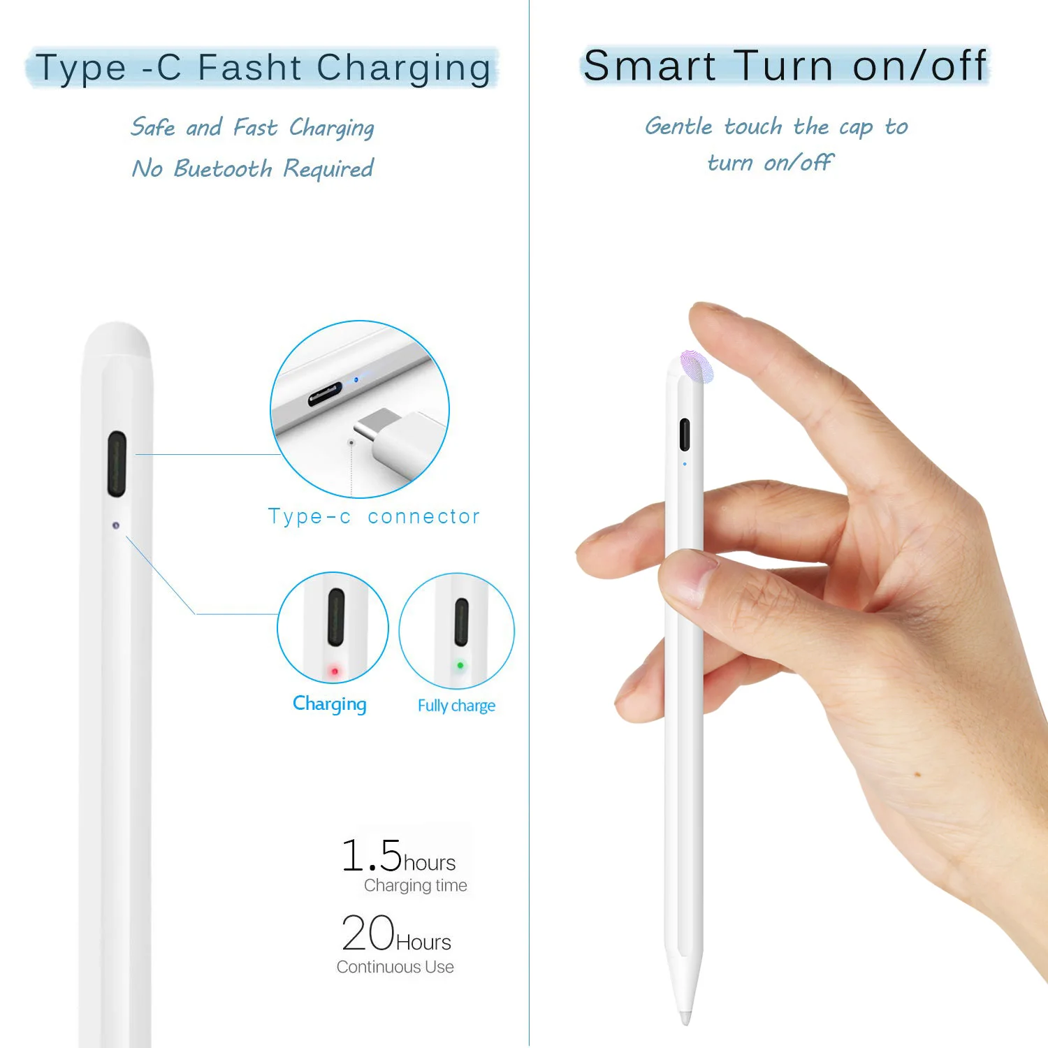 Ладони отказ: Усовершенствованный стилус позволяет вам держать ладонь на экране при рисовании без перчаток, более комфортным и реальным, чем другие ручки. 1,2 мм тонкая точка: Последние карандаш для ipad с 1,2 мм углеродное волокно тонкими концами) создает бумага-как писать считают, что более точный и отзывчивый по сравнению с другими стилус на рынке. Один сменный запасной блок в комплекте. Нет запахов; Нет скачков; Нет Царапины; Отсутствие шума. Все модели iPad должны быть обновлены до iOS 12,2 и выше. Сенсорный активированный Кепки: Нажмите на сенсорную крышку этого пера для ipad, чтобы включить/выключить. Дизайн одной кнопки для удобства использования, Bluetooth не требуется. Быстрая зарядка с портом типа C: (За дополнительную плату за счет USB-C кабель, в комплекте) Встроенный перезаряжаемый аккумулятор, позволяет использовать этот стилус fpr iPad на целый день с одной полной зарядкой. Функция автоматического сна: Эта цифровая ручка Выключите после 5 минут холостого хода Для экономии энергии. Не беспокойтесь о выходе из строя. Цельная бесшовная Корпус: Корпус из алюминиевого сплава с анодированным процессом, стильная и Минималистичная матовая текстура как настоящий карандаш.