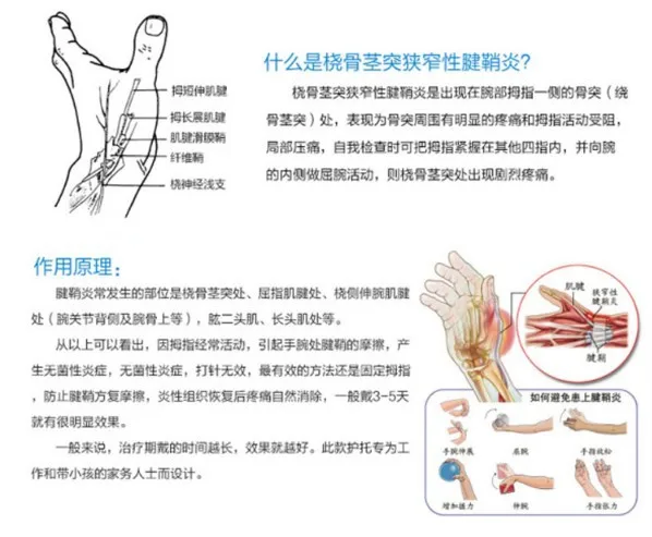 Видно сверху, что из-за частого движения большого пальца трение ножны сухожилия у запястья вызывает асептическое воспаление, а инъекция неэффективна. Наиболее эффективный метод-Фиксация большого пальца и Предотвращение повторения ножны сухожилия.