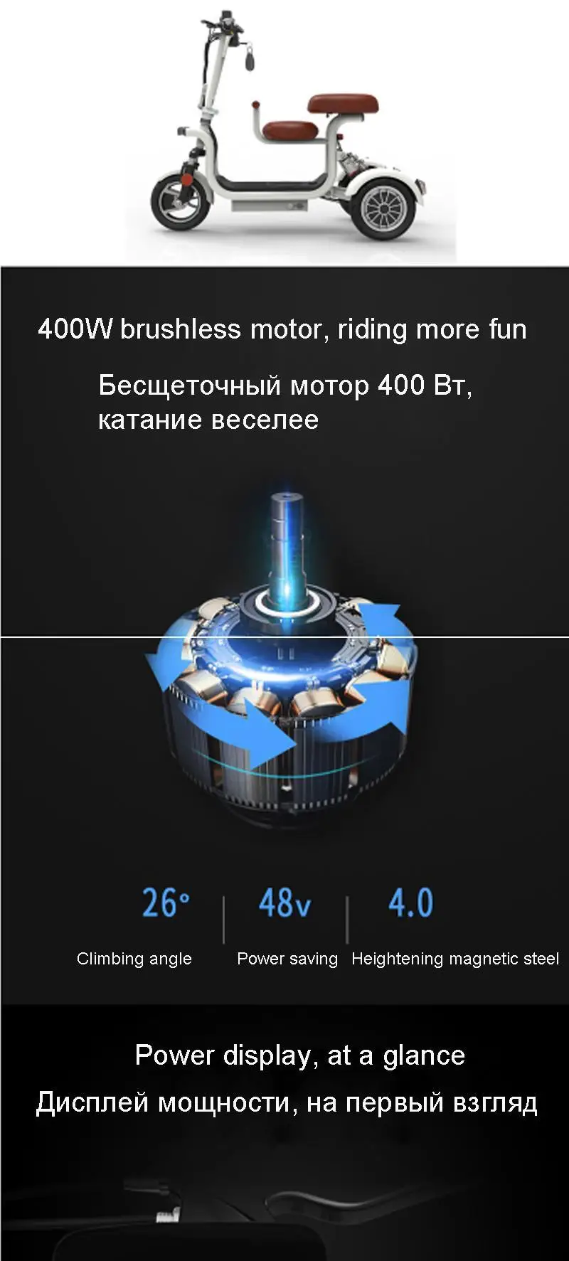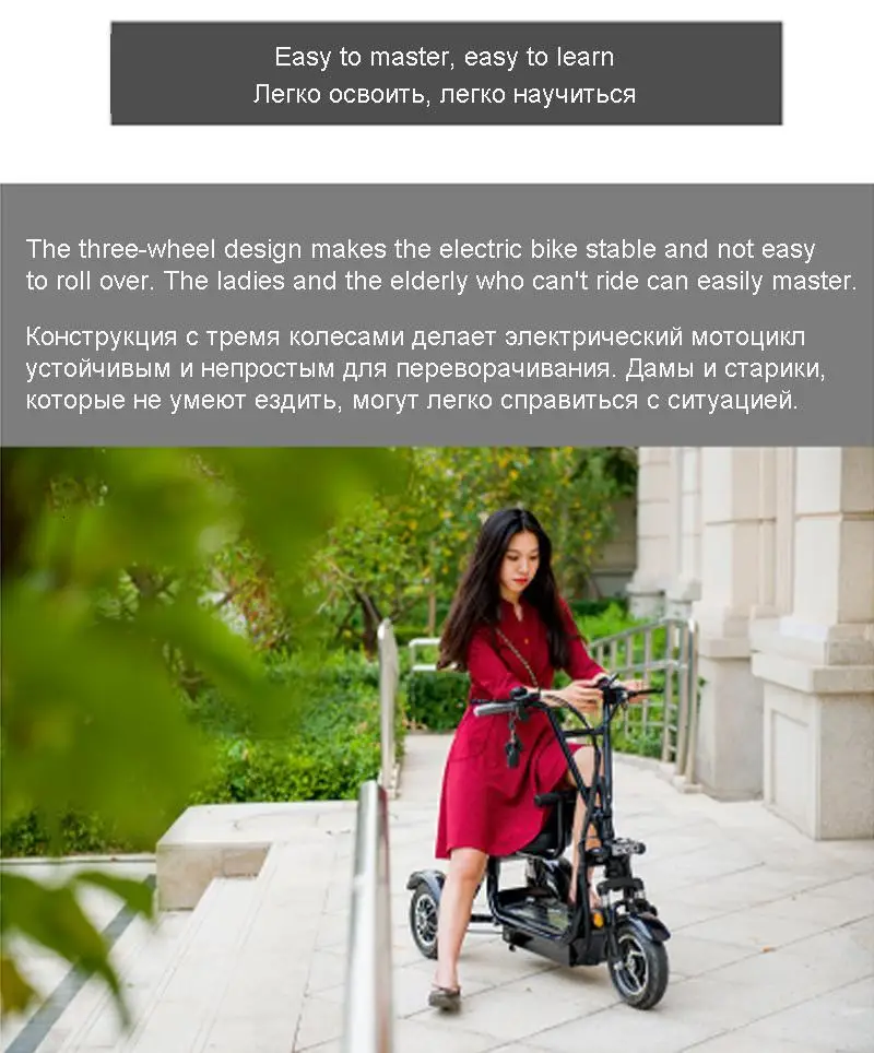 Новый Электрический трехколесный велосипед 3 колесный Электрический велосипед 10 дюймов 400 Вт 48 в 60 км Портативный электрический скутер для родителей и детей