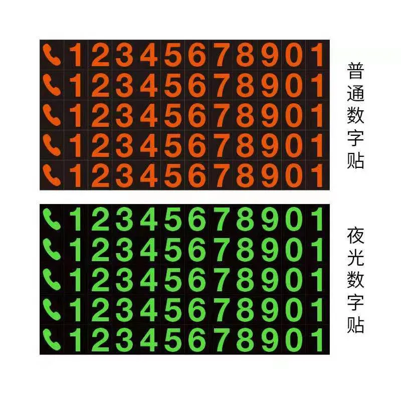 Магнитный мощный стикер, водонепроницаемый, высокотемпературный, цифровой стикер, временная парковка, мобильный телефон, стикер, Ночной светильник, светящийся эффект ночных чернил, каждая группа состоит из телефонного знака и 0*9 в качестве группы, пять групп в качестве набора цифровых наклеек. Цифровой Размер: Высота 9 мм, ширина 8 мм
