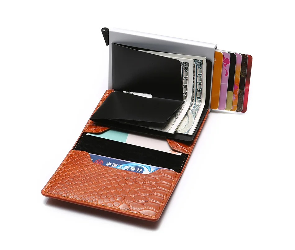 Противоугонный держатель для банковской кредитной карты, для женщин, кредитная карта, Тонкий Rfid пропуск, металлический кошелек, бизнес, безопасная защита id карты