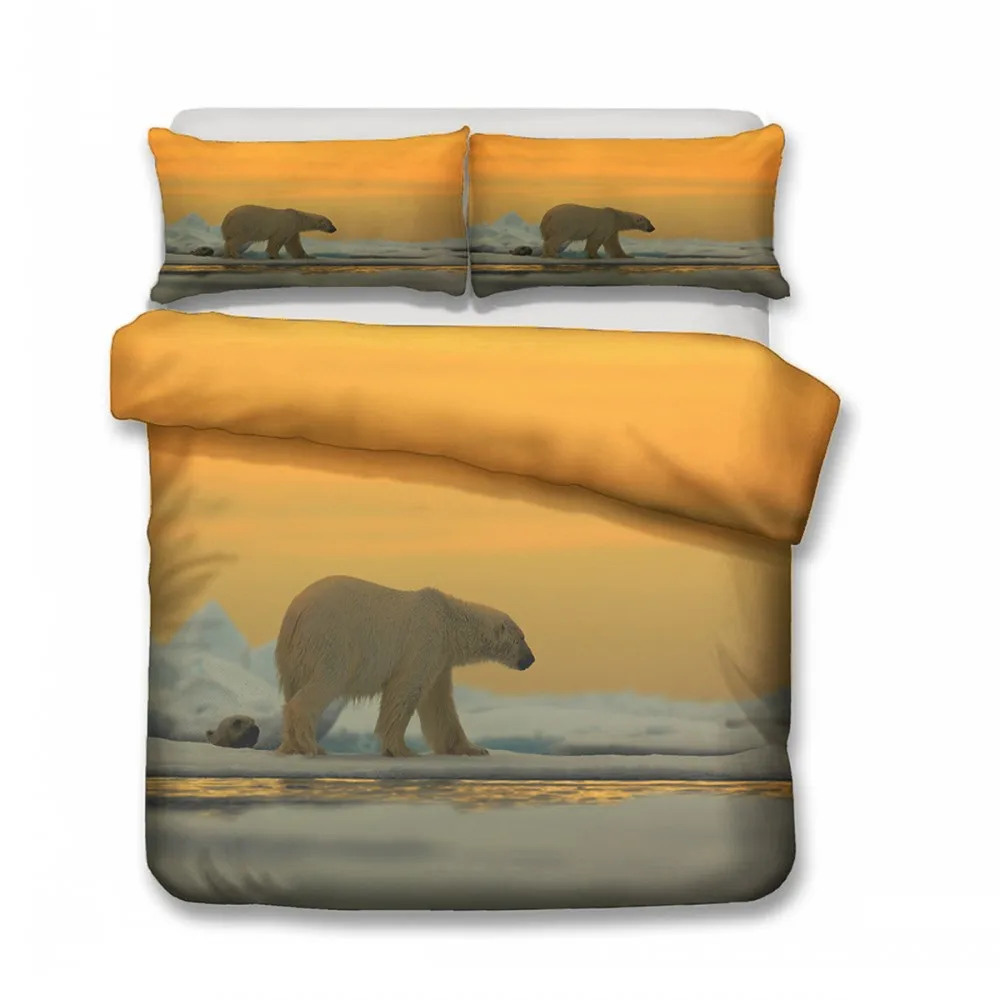 Animals Bedding Set Polar Bear Duvet Cover Set Gold Sunset Bedspread Soft Comforter Cover Set with Pillowcase 2/3Pcs for Kids