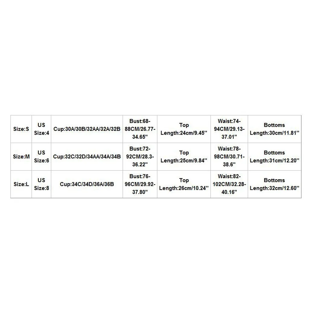 Размеры Нам Размеры Чашка Обхват груди Топ Длина Обхват талии Нижняя часть Длина S 4 30A/30B/32AA/32A/32B 68-88 см/26,77-34,65" 24 см/9,45'' 74-94 см/29,13-37,01" 30 см/11,81'' М 6 32C/32D/34AA/34A/34B 72-92 см/28,3-36,22" 25 см/9,84'' 78-98 см/30,71-38,6" 31 см/12,20'' L 8 34C/34D/36A/36B 76-96 см/29,92-37,80" 26 см/10,24'' 82-102 см/32,28-40,16" 32 см/12,60''