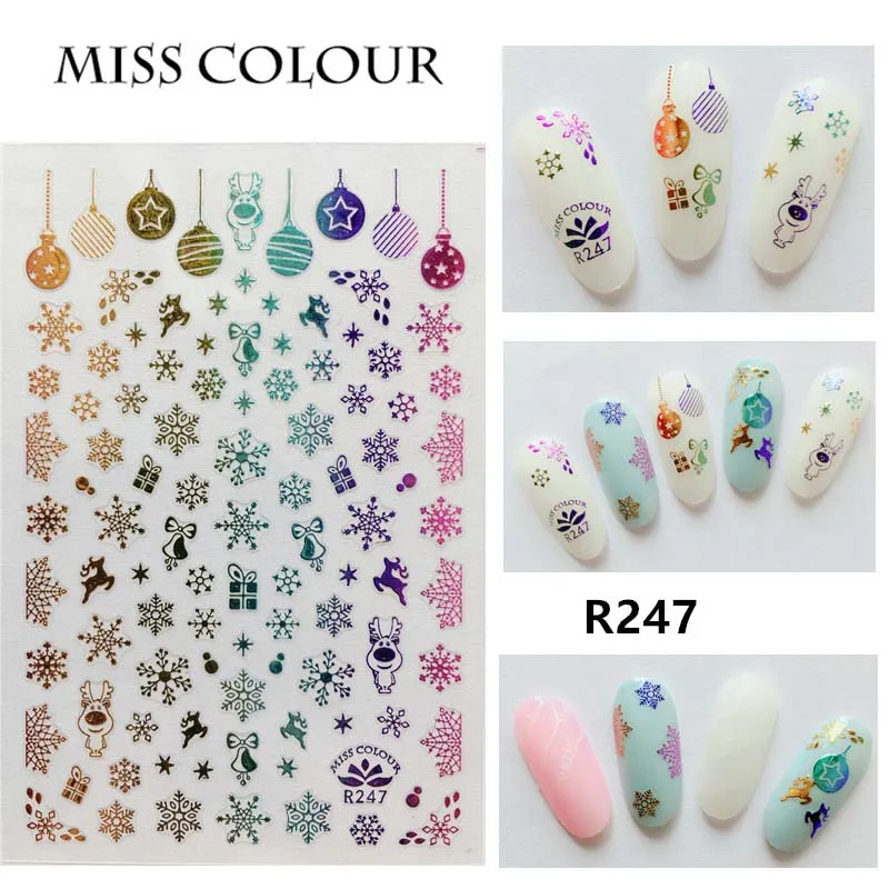 Новые поступления Дизайн Снежинки ногтей переводная наклейка для воды Легко наносится и красота ногтей Цвет: красочные 3d Рождественские снежинки наклейки для ногтей Дизайн: Рождественский Снеговик снежинки подарок Санта звезда олень животные Инструкции по использованию: 1. Очистите поверхность ногтя 2. Выберите дизайн и отклейте гвоздь. 3. Поместите дизайн в ноготь/кончик и аккуратно протрите его несколько раз. 4. Нанесите верхнее пальто для лучшего результата. Упаковка: 7 шт 3D стикер для дизайна ногтей