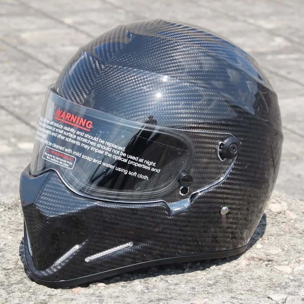Высокопрочный корпус из углеродного волокна, легкий и ударопрочный Сертификация безопасности точки Многослойный буферный слой из пенополистирола обеспечивает новейшее энергопоглощение. Размер: S(55-56 см),M(57-58 см),L(59-60 см) ,XL(61-62 см) ,XXL(63-64 см) Посылка: 1 * мотоциклетный шлем