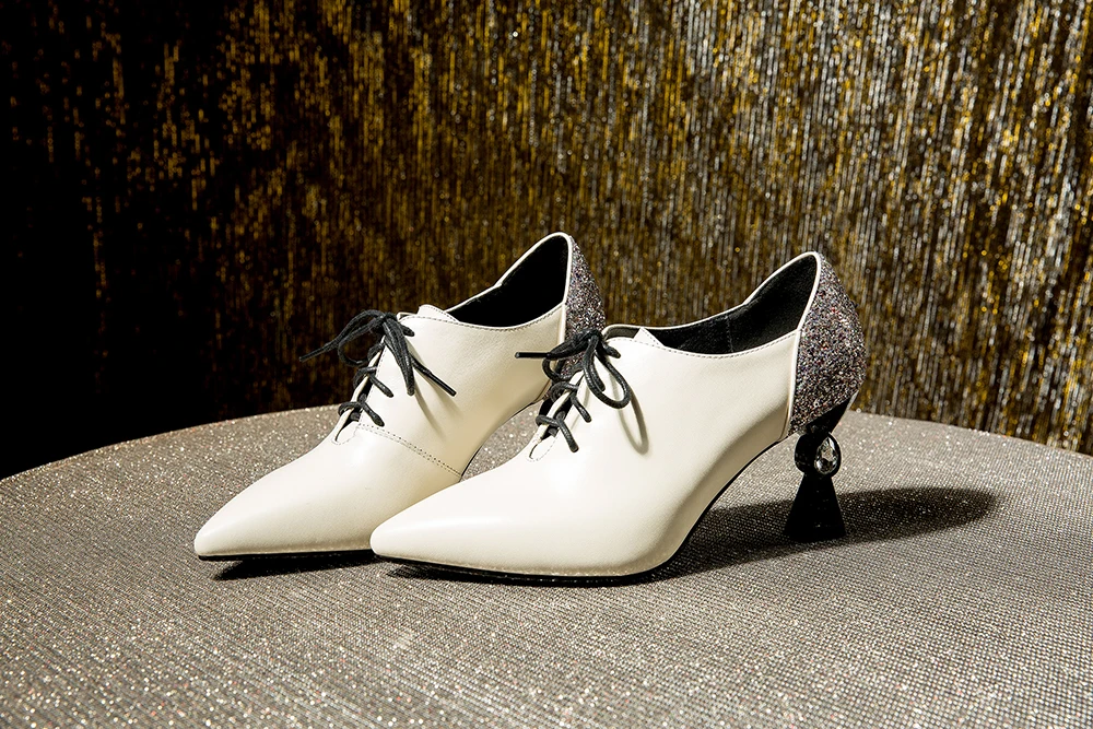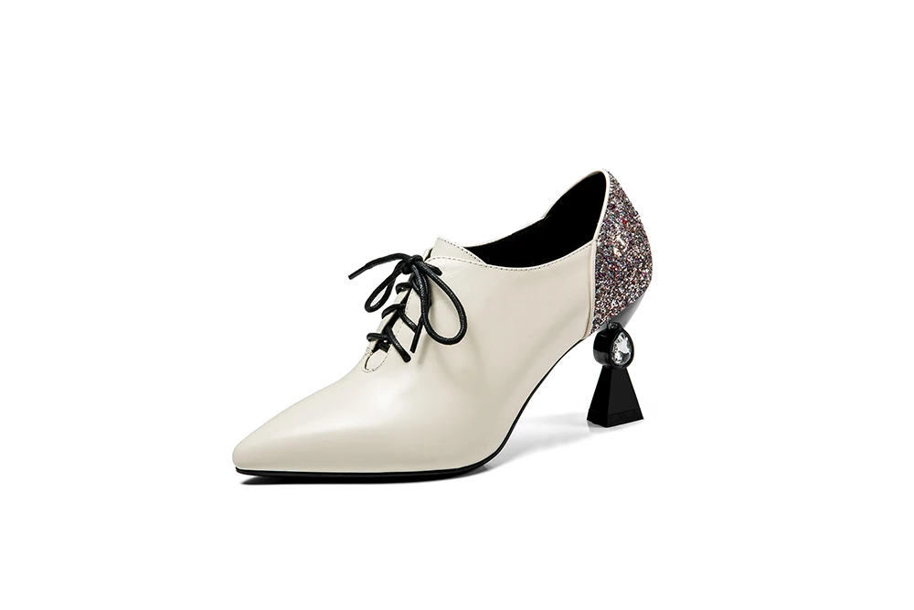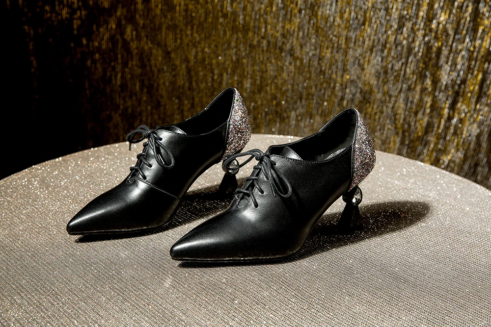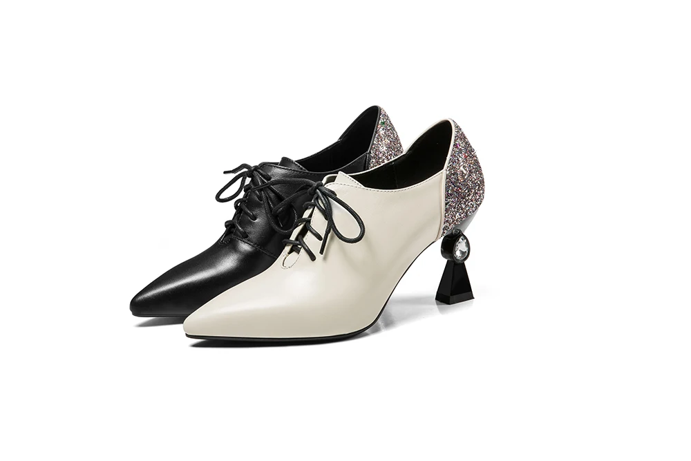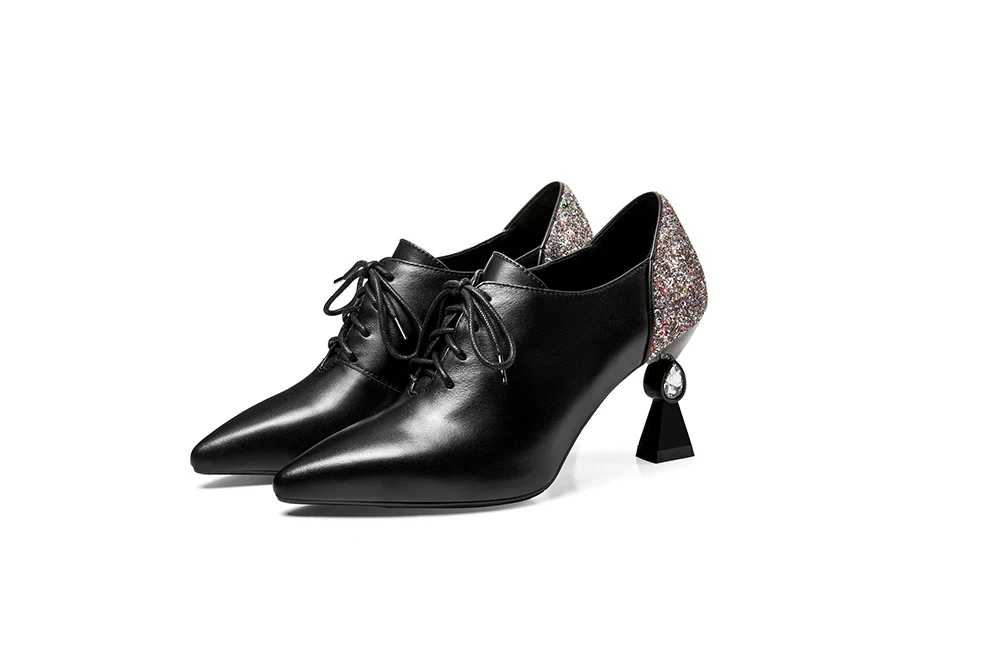 RJN/модные женские туфли-лодочки; Блестящие украшения сзади; Уникальный странный стиль каблука; Пикантная обувь на шнуровке с острым носком; Женские туфли-лодочки для работы; RO61