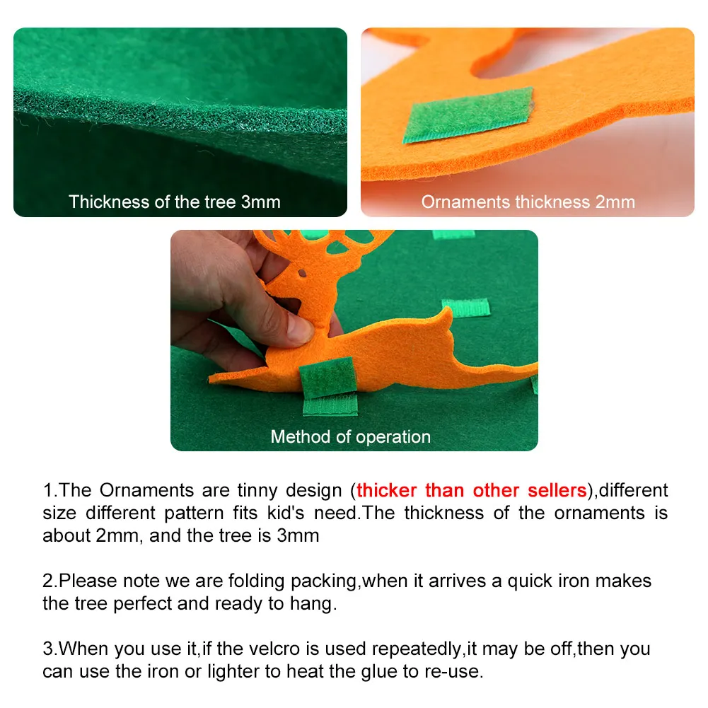 ◆Размер-фетровая Рождественская елка для детей, размеры 27x19 дюймов (68x48 см) Обновленная версия делает войлочную рождественскую елку более прочной и легче перемещать ее. Изготовлен из высококачественного войлока, прочный, мягкий, нет запаха, он абсолютно безопасен для детей. Вы можете хранить его в красивой сумке, когда не играете