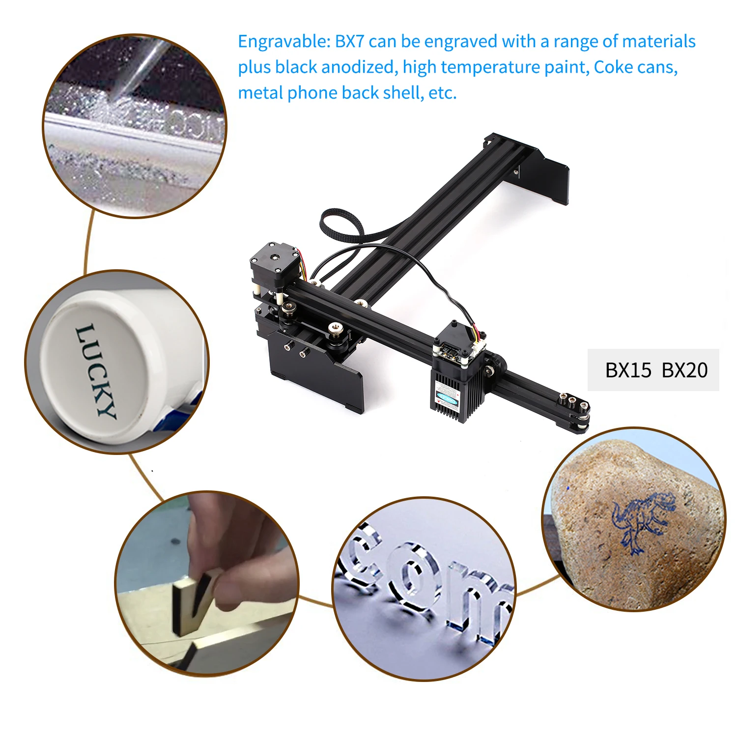 BX15 BX20 Новая функция: Отрегулируйте лазерный фокус на 10 мм, этот гравировальный станок способен вырезать материалы из нержавеющей стали и алюминиевый черный анод, за исключением меди, алюминиевого сырья.