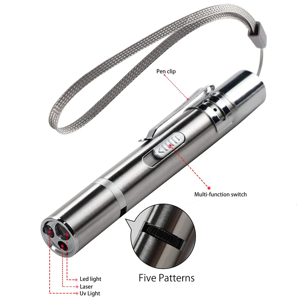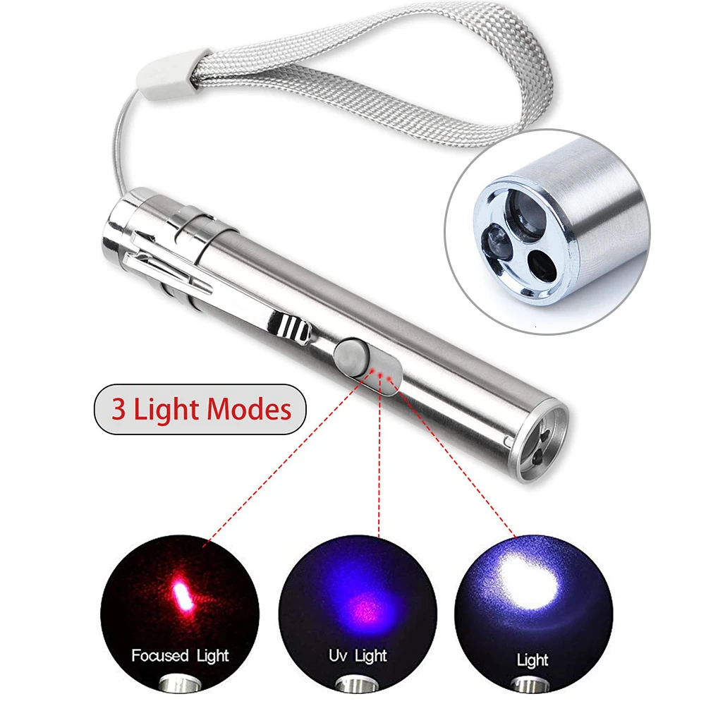 Дизайн 3-в-1: 3 вида световых режимов (red dot + УФ + мини-фонарик). Многофункциональный: красную точку прицела можно использовать в качестве интерактивная игрушка для домашних животных кошка для дрессировки собак и захватывающие; УФ-детектор для пятна, Детектор фальшивых денег, Собака мочи, следов жизнедеятельности домашних животных и многое другое; мини белым фонариком, подходят для ежедневного использования. Обновление USB зарядный порт: 【быстро charging】【no batteries】 его можно заряжать в зарядном устройстве, мобильных телефонов, USB Автомобильное зарядное устройство, компьютер. Он может быть полностью заряжен около 1,5 часов. Он может длиться около одной недели (в зависимости от использования) Кнопка обновления: световых режимов кнопка-переключатель, а не пуш-ап, поэтому вам не придется удерживайте ее в течение всего срока эксплуатации вы играете с котом. Вы можете скольжения переключатель, чтобы получить разные режимы света. Цвет: серебристый Материал: нержавеющая сталь 304 Маленький размер: легок и прост в использовании, в помещении и на открытом воздухе можно играть. USB зарядка: энергосбережение, удобство в использовании. Предупреждение: оптимальным диапазоном составляет около 30-50 метров, не подходит для использования под солнечными лучами или сильном освещении в использовании. Пакет включает в себя: Вариант 1:1 x Pet светодиодный свет, 1 х usb-кабель для зарядки Вариант 2:1 x Pet светодиодный свет