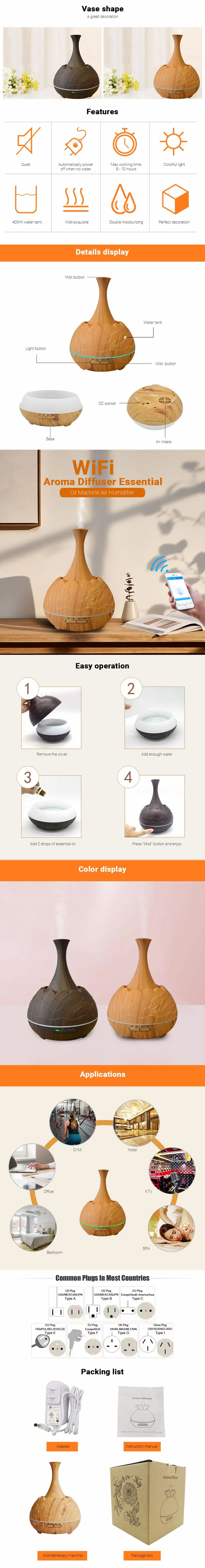 Увлажнитель воздуха WiFi Арома диффузор эфирное масло машина деревянный узор для дома отель офис