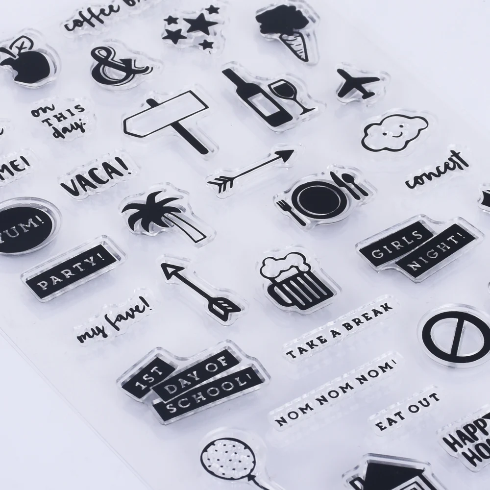 Название: прозрачный штамп Штамп Размеры: 11 см x 16 см Тип товара: прозрачный штамп Пол: унисекс Три простых шага для использования ваших новых марок! 1. Просто снимите штамп с прозрачного листа и поместите его на прозрачный акриловый монтажный блок. Клеи не требуются, так как штампы цепляются за блоки. 2. Нанесите чернила на штамп. 3. Поместите изображение на нужную поверхность и плотно нажмите вниз.