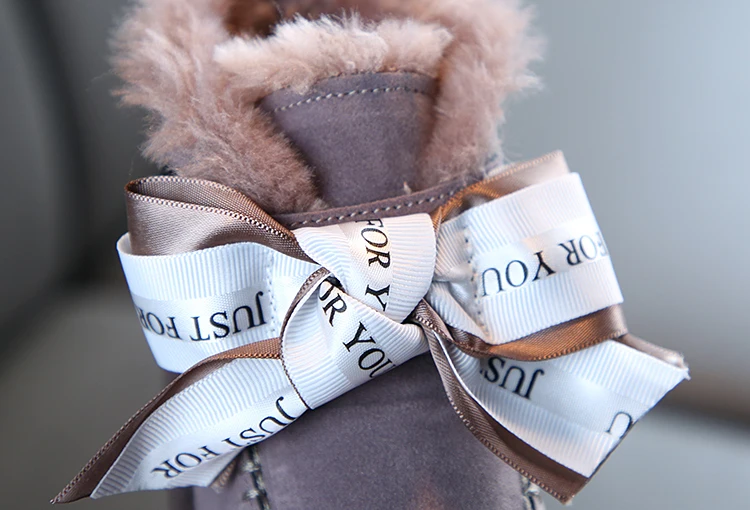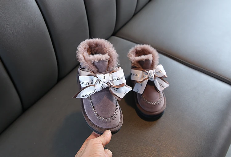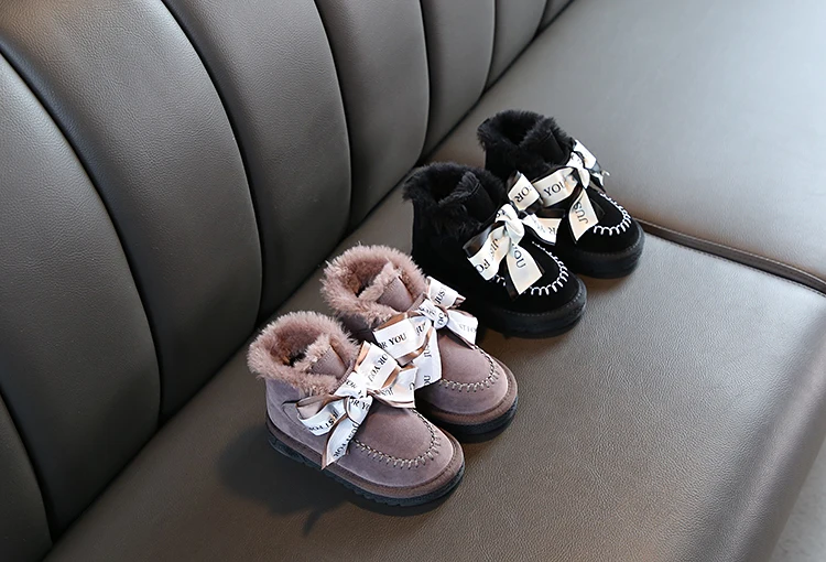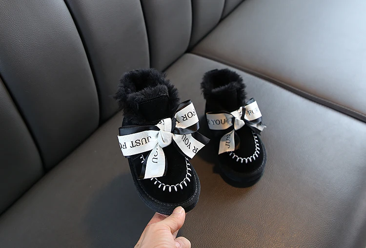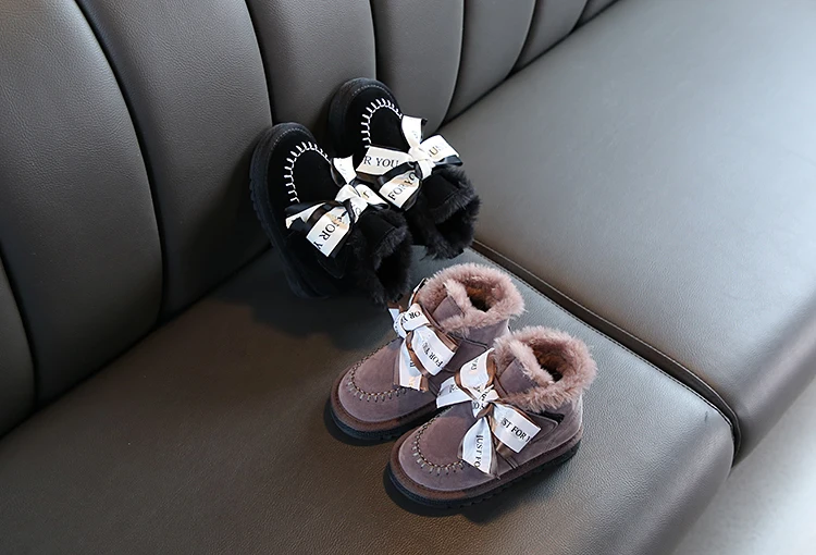 Детские зимние сапоги; Коллекция 2020 года; Корейские зимние сапоги для девочек; Теплые Нескользящие плюшевые кожаные сапоги принцессы с бантом; Детская обувь; Обувь для девочек