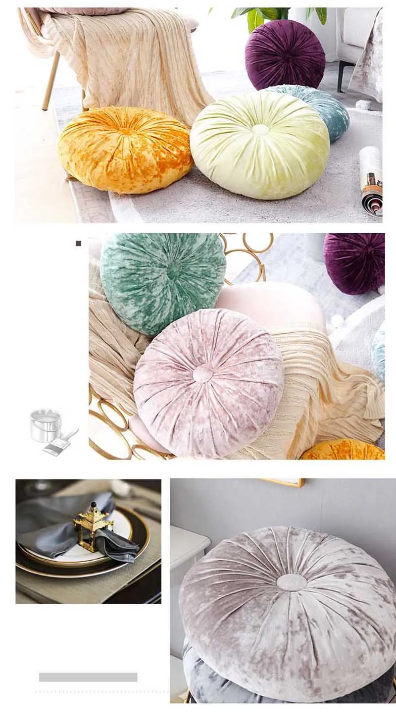 Европейский Стиль круглая подушка для сиденья с плиссированной спиной подушки для дивана бархатной ткани Тыква сиденье Подушка для дома, Декор для дома, 40x40 см