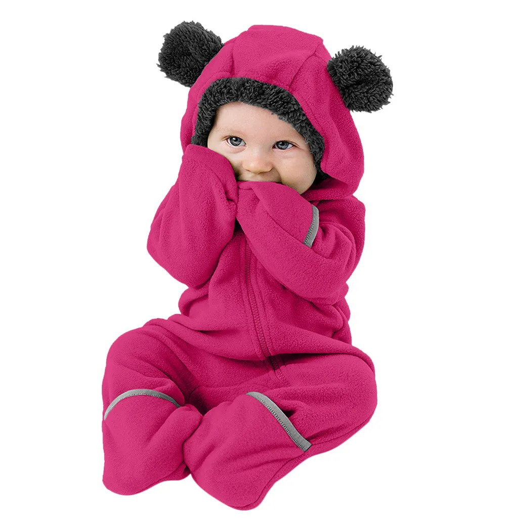 Флисовое пальто с капюшоном и ушками из мультфильма; Комбинезон; Милый однотонный Мягкий комбинезон для маленьких девочек и мальчиков; Однотонная одежда; kurtka zimowa dziecia