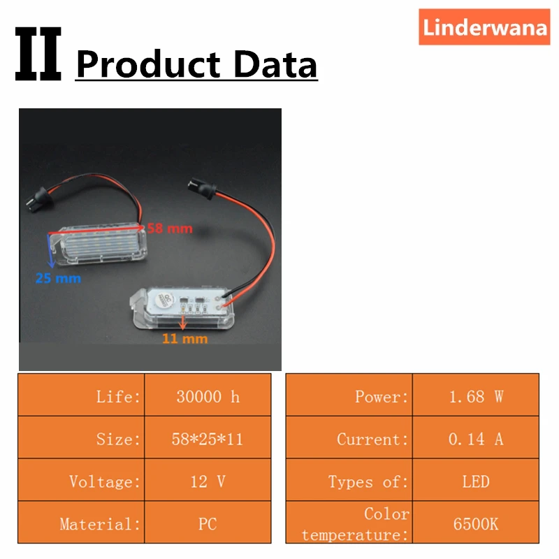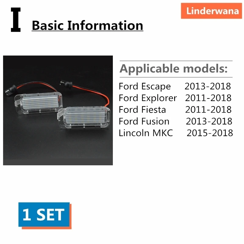 Технические характеристики: Материал: ПК Мощность: 1,68 W Цветовая температура: 6500K Продолжительность жизни: 30000 часов Светильник источник света: светодиодный Напряжение: 12V Ток: 0,14 (A) Размер: 58*11*25 (мм) Применимые модели: Для Ford Escape 2013-2018 Для Ford Explorer 2011-2018 Для Ford Fiesta 2011-2018 Для Ford Fusion 2013-2018 Для Lincoln MKC 2015-2018 Примечания: 1. Возможны незначительные отклонения в размере из-за ручного измерения, различных методов измерения и инструментов. 2. Изображение может не отображать фактический цвет товара из-за различного фотографирования светильник, угол и дисплей монитора. Упаковка pureglas 2 фонаря номерного знака Посылка включает в себя: 2 * лампа номерного знака