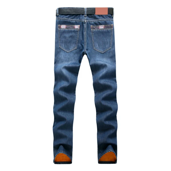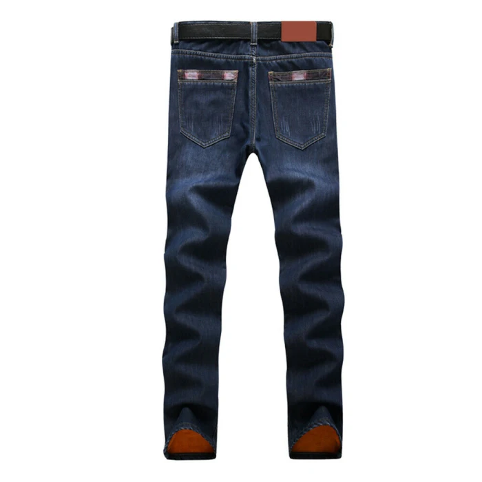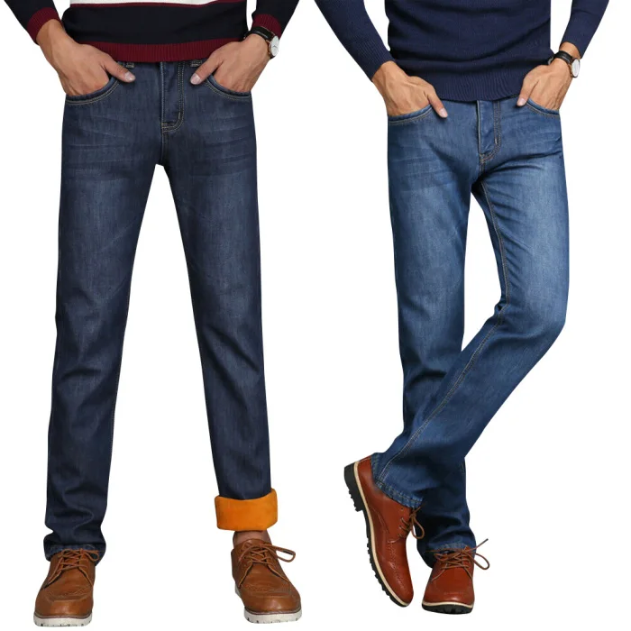 Мужские зимние Утепленные джинсы с флисовой подкладкой, джинсовые длинные штаны, повседневные теплые штаны для офиса и путешествий, FEA889