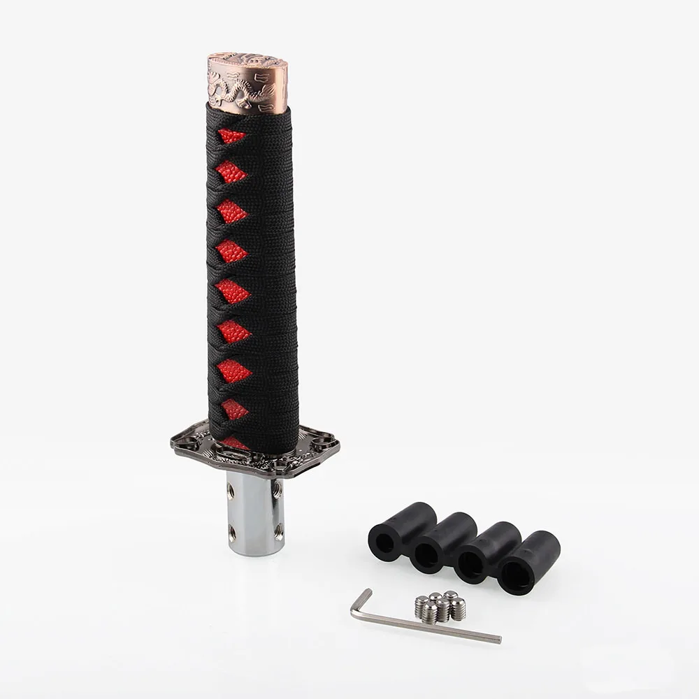 100% новый и высокое качество Он изготовлен из 2 частей: ручка и tsuba Диаметр отверстия ручки переключения передач составляет 12 мм, если диаметр переключения скоростей меньше 12 мм, он подойдет для вашего автомобиля Идеальное сочетание Бушидо и головки стойки Тонкое мастерство; Властный Дизайн рукоятки Шелковый канат имеет перекрестный дизайн, он Противоскользящий и удобный на ощупь Режущая головка: олово Ручка: бревно, железо и ткань Соединение: алюминиевый сплав Цвет: черный + красный Подходящая модель: обычная (не подходит для замка передач)