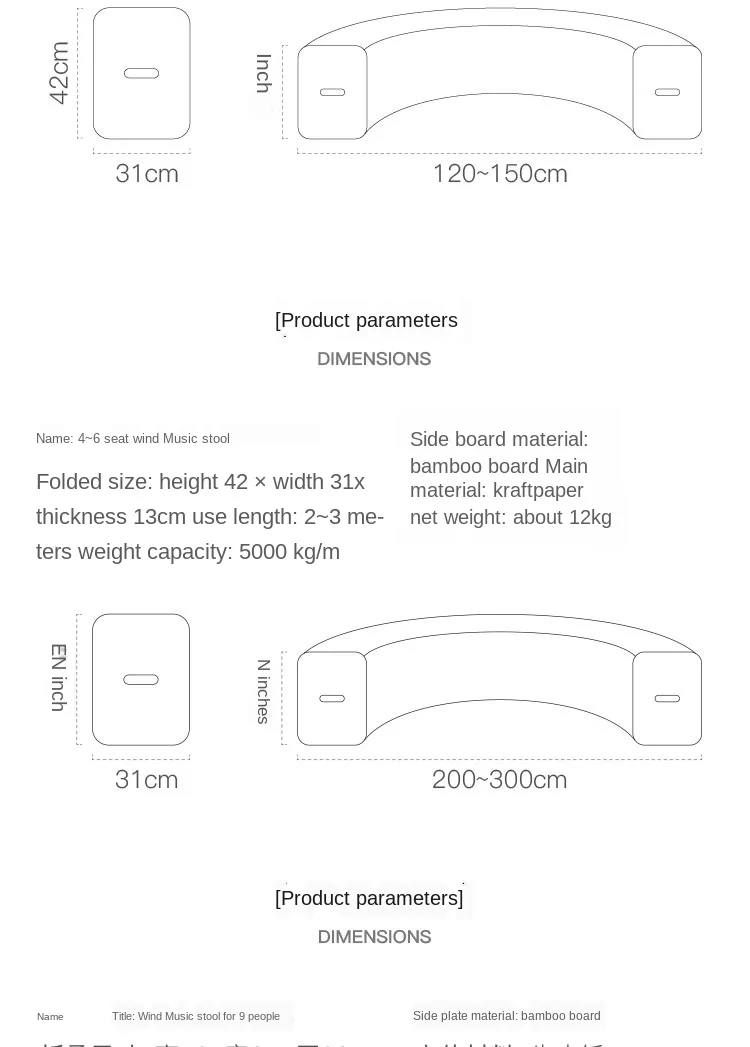 2. Высота 42 см, ширина 31 см и длина 2-3 м могут сидеть от 4 до 6 человек