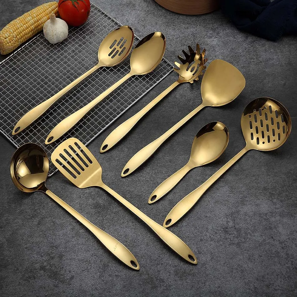 8 шт. антипригарные золотые титановые кухонные инструменты из нержавеющей стали набор посуды ложка лопатка бытовой инструмент для приготовления пищи